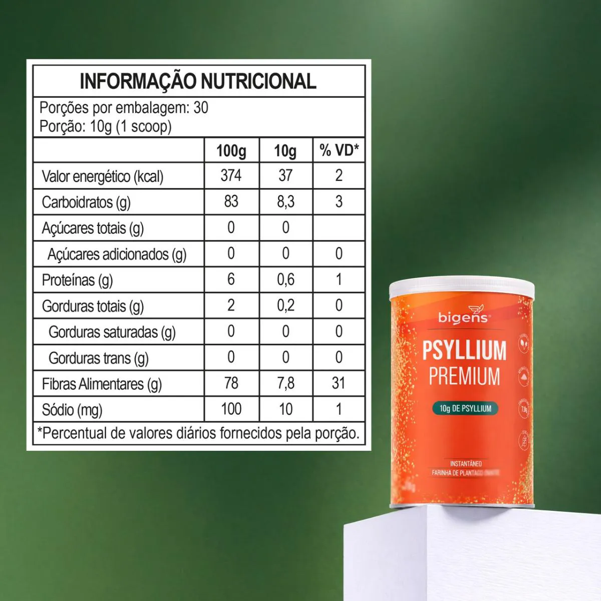 O Psyllium Premium Bigens é indicado para quem precisa aumentar o consumo de fibras de forma prática, com uma fórmula clean label, vegana, livre de glúten e com apenas um ingrediente.
