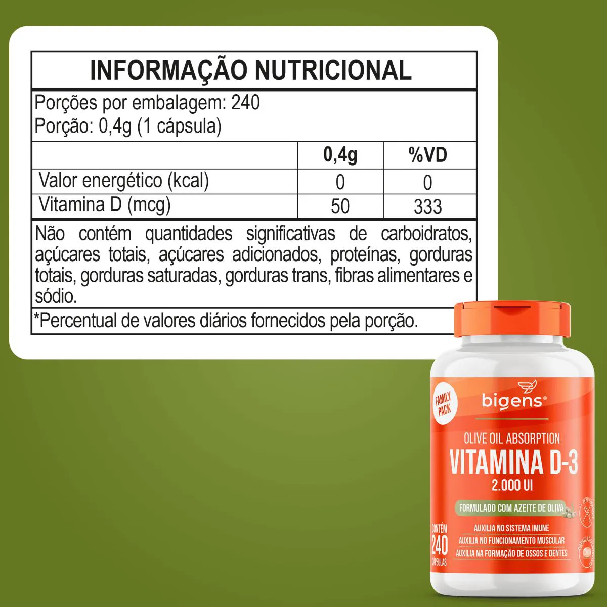 Bigens Vitamina D3 2000ui Óleo de Oliva 240 cápsulas