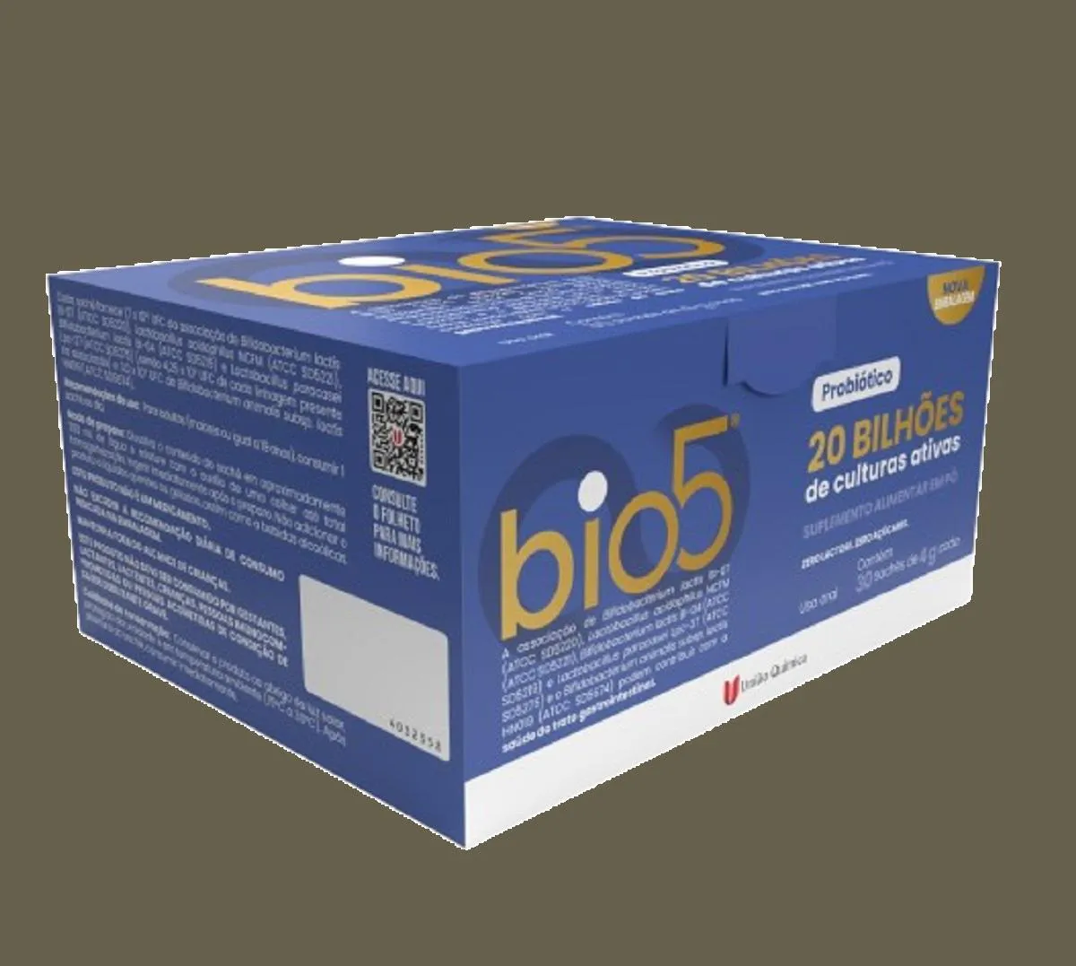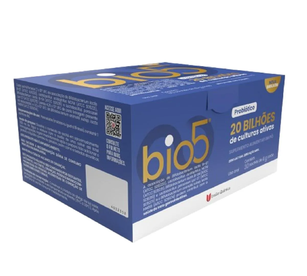 A linha de probióticos da Genom / União Química é reconhecida pela sua qualidade e eficácia, proporcionando suporte ao sistema imunológico e contribuindo para a saúde digestiva. Experimente o Bio 5 e sinta a diferença que um intestino saudável pode fazer na sua vida. Imagens Meramente Ilustrativas. Todas as Informações Divulgadas são de Responsabilidade Exclusiva do Fabricante/fornecedor.