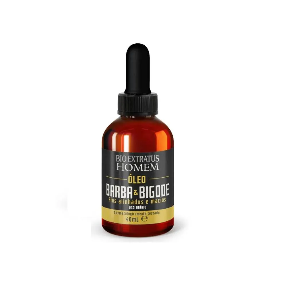 Bio Extratus Homem Cabelo e Barba - Óleo Barba e Bigode 40ml: fórmula leve, de toque seco, que perfuma, condiciona e hidrata os fios. Rica em óleos vegetais e vitamina e para nutrir, alinhar e deixar um brilho saudável.