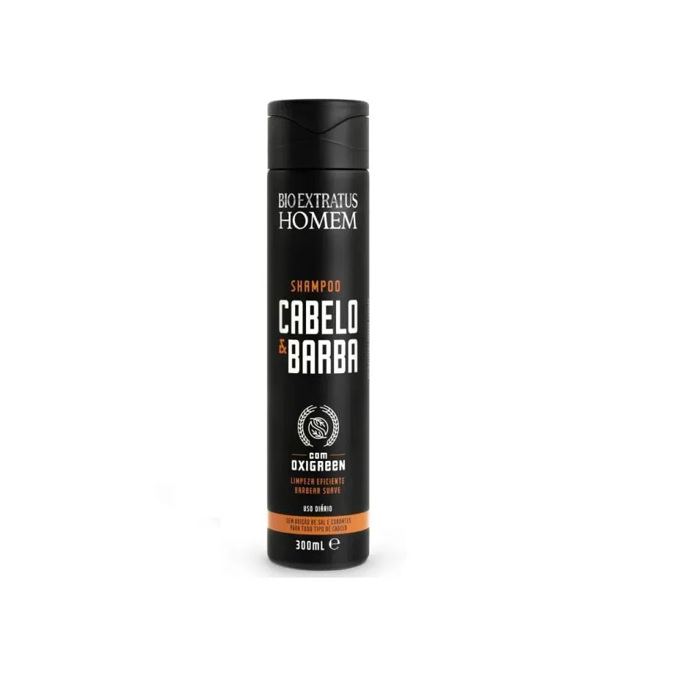 Contém:Bio Extratus Homem Cabelo e Barba - shampoo 300ml: Sem adição de sal ou corantes, limpa e proporciona uma sensação refrescante. No rosto, facilita o barbear, deixando a pele mais macia e reduzindo a irritabilidade.