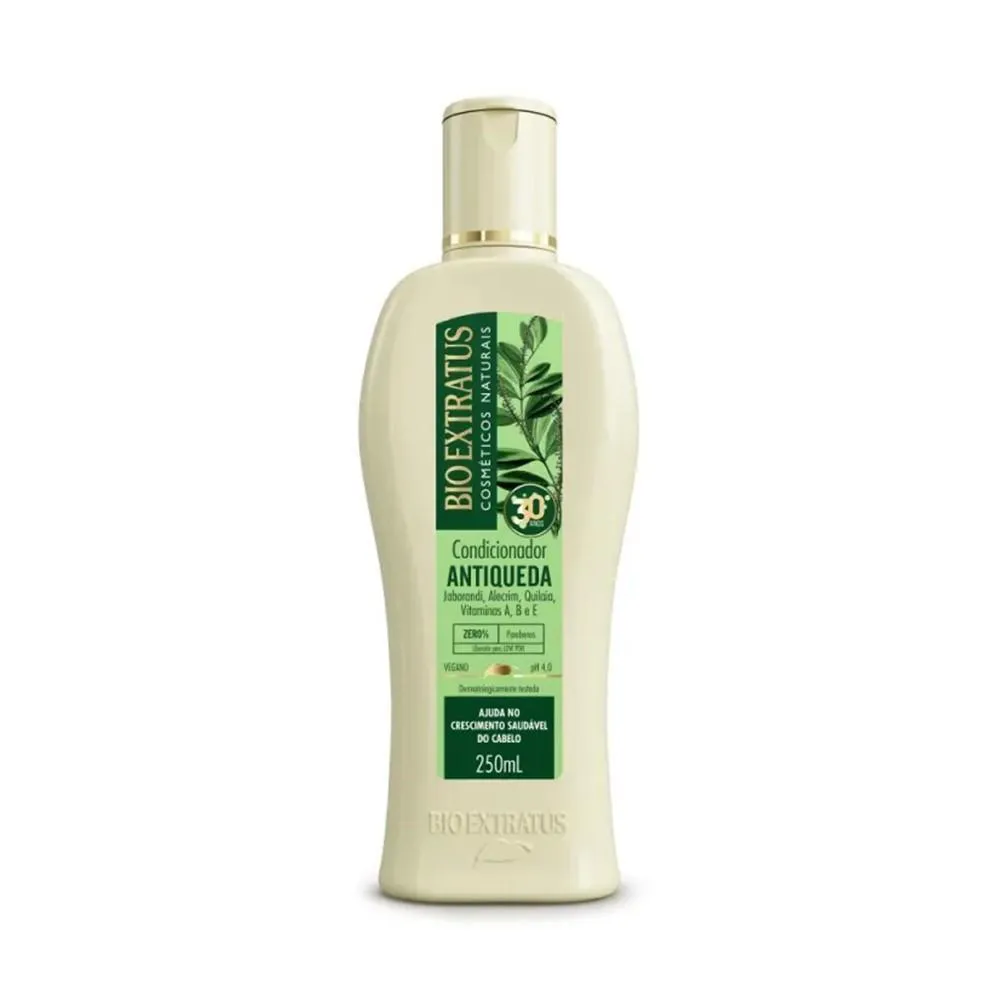 condicionador para cabelos com queda. Condiciona e revitaliza o cabelo, fortalecendo os fios. O Condicionador Bio Extratus Jaborandi Antiqueda tem fórmula especialmente desenvolvida com Jaborandi que estimula o crescimento e previne a queda, Quilaia possui ação adstringente que ajuda a controlar a secreção sebácea e o Alecrim que é um estimulante natural, antisséptico, anti-inflamatório, refrescante, adstringente e cicatrizante.