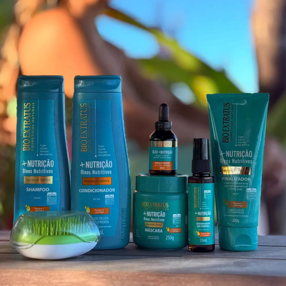 Bio Extratus +Nutrição proporciona fios alinhados, fortes e macios. Sua combinação de óleos preciosos de argan, jojoba, macadâmia e abacate, tratam profundamente os fios. Promove uma recuperação intensa e brilho saudável, respeitando o pH 3,5 para um cuidado restaurador completo.Conselho de Aplicação