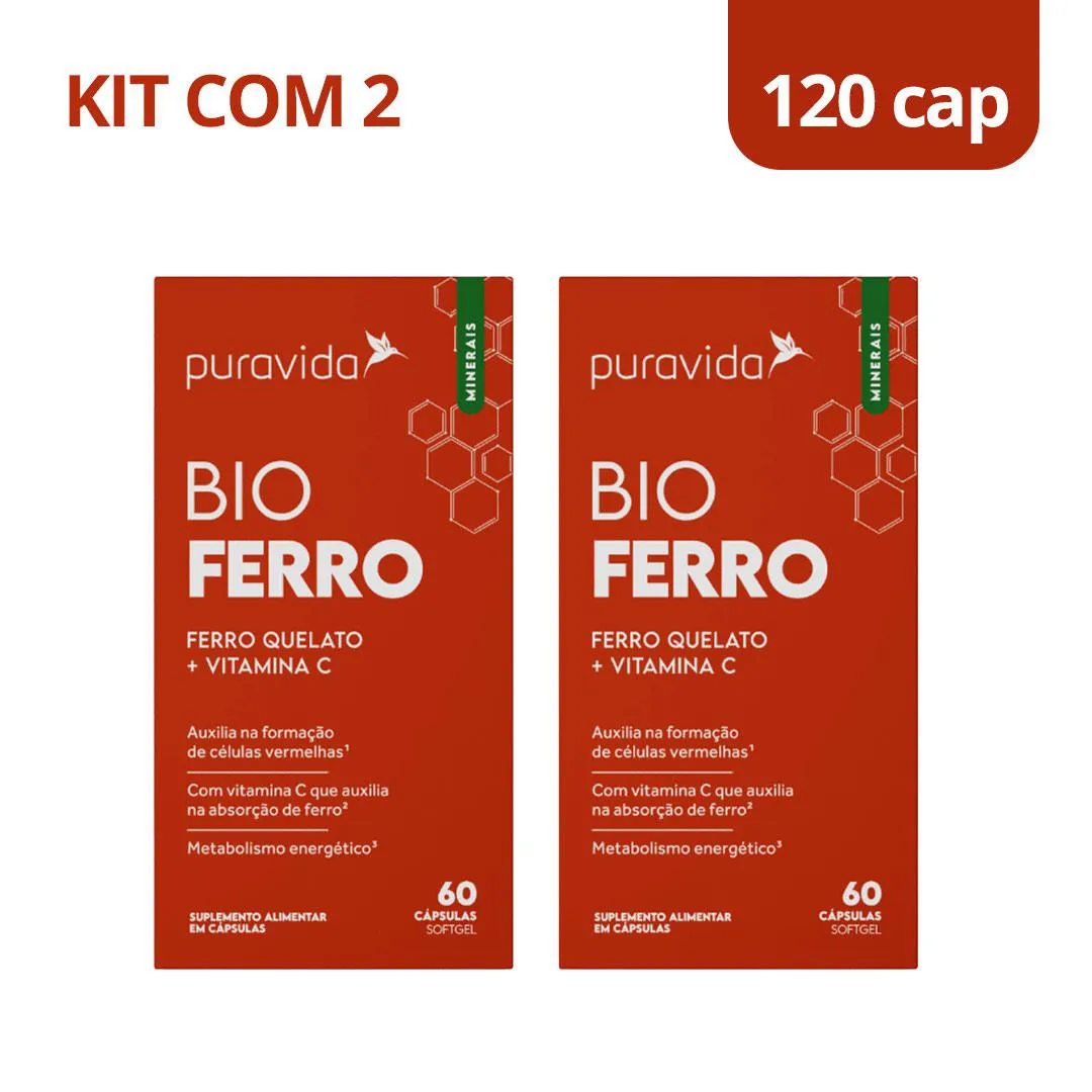 Bio Ferro Suplemento + Vitamina C Kit 2 - 60 Caps - Puravida
