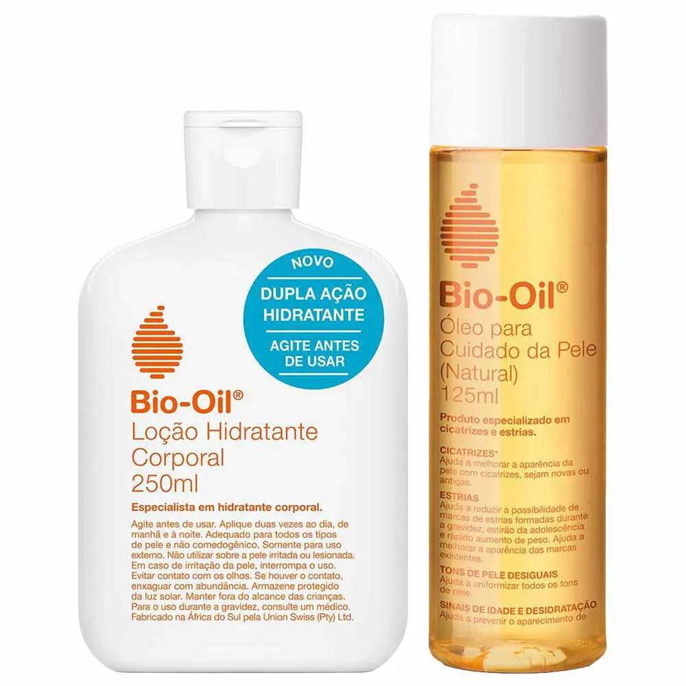 O Bio-Oil Kit é composto por dois produtos essenciais para sua rotina de cuidados corporais: a Loção Hidratante Corporal e o Óleo Corporal.
