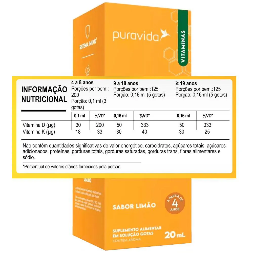 BIO VIT D3 + K2 EM GOTAS LIMãO (20 ML) - PURA VIDA