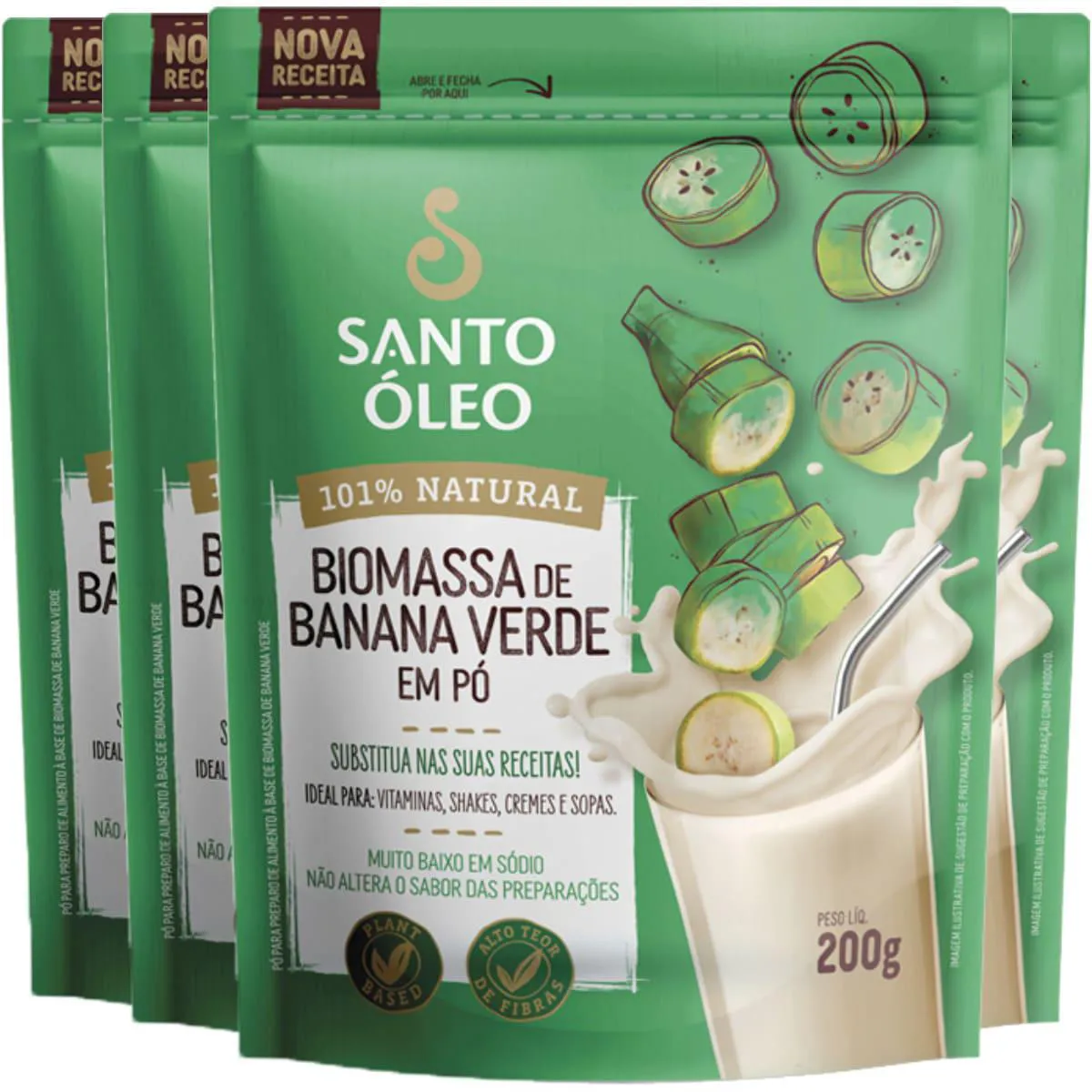 Biomassa de Banana Verde em Pó 4 X 200g Santo Óleo