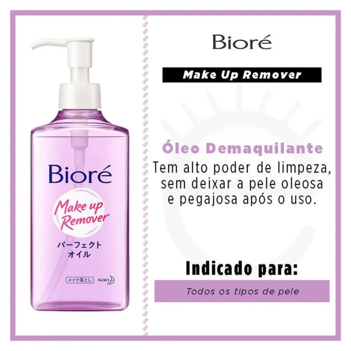 Óleo de Limpeza Bioré Demaquilante remove completamente toda e qualquer maquiagem, incluindo máscara à prova d?água, delineador, batom e base. Não deixa resíduos e nem sensação de pele oleosa após o uso. Última tecnologia em demaquilantes que remove a maquiagem até mesmo com as mãos e o rosto molhados.