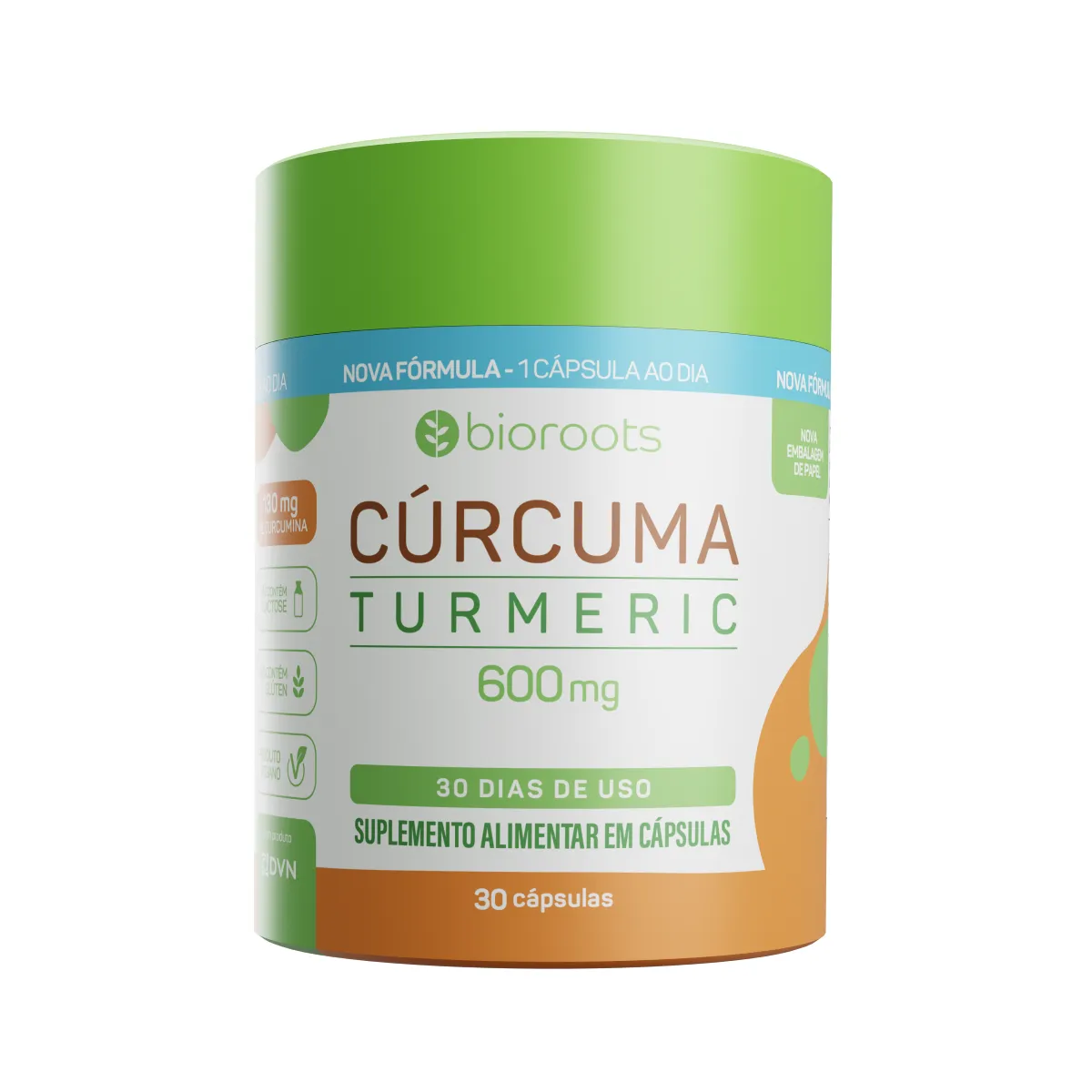 A Cúrcuma Turmeric 600mg da Biorrots é um suplemento nutricional 100% natural à base de extrato seco de cúrcuma, oferecendo 600mg de Extrato Seco + 130mg de Curcumina por cápsula.