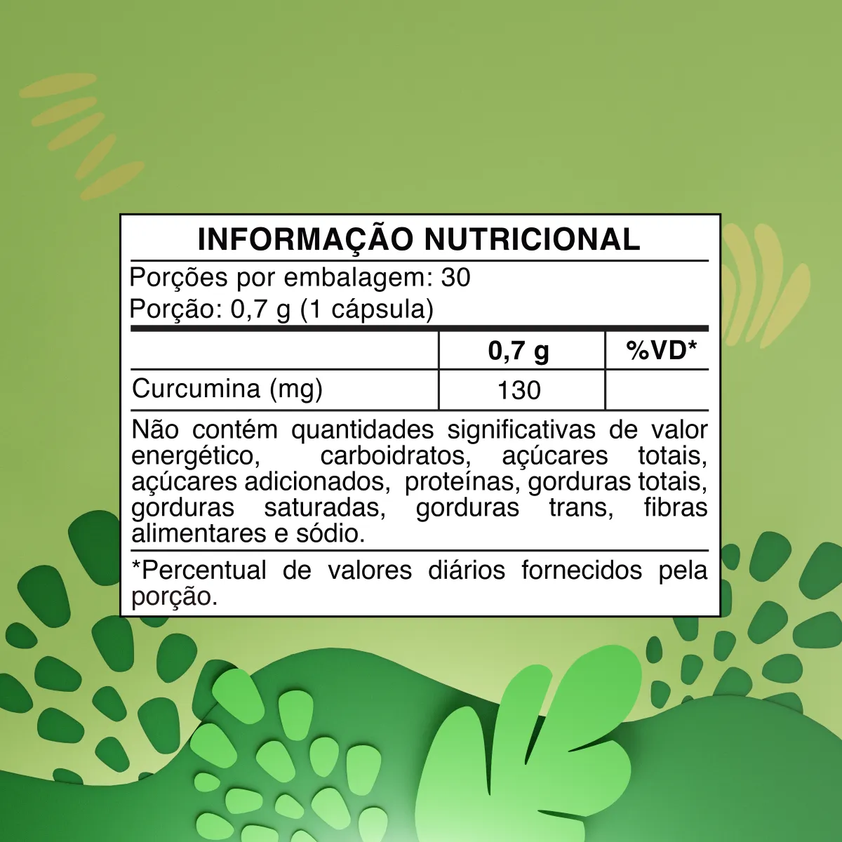 - Ingrediente: 600mg de Extrato Seco de Cúrcuma + 130mg de Curcumina.