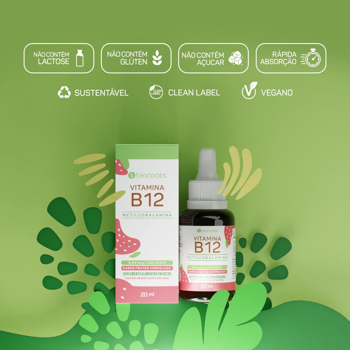 O Bioroots Vitamina B12 é um suplemento alimentar em gotas formulado à base de Metilcobalamina com sabor de Frutas Vermelhas.