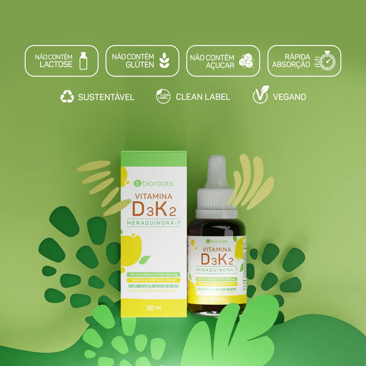 Vitamina D3 2.000UI + K2 120 mcg Bioroots Sabor Limão Siciliano 20 ml