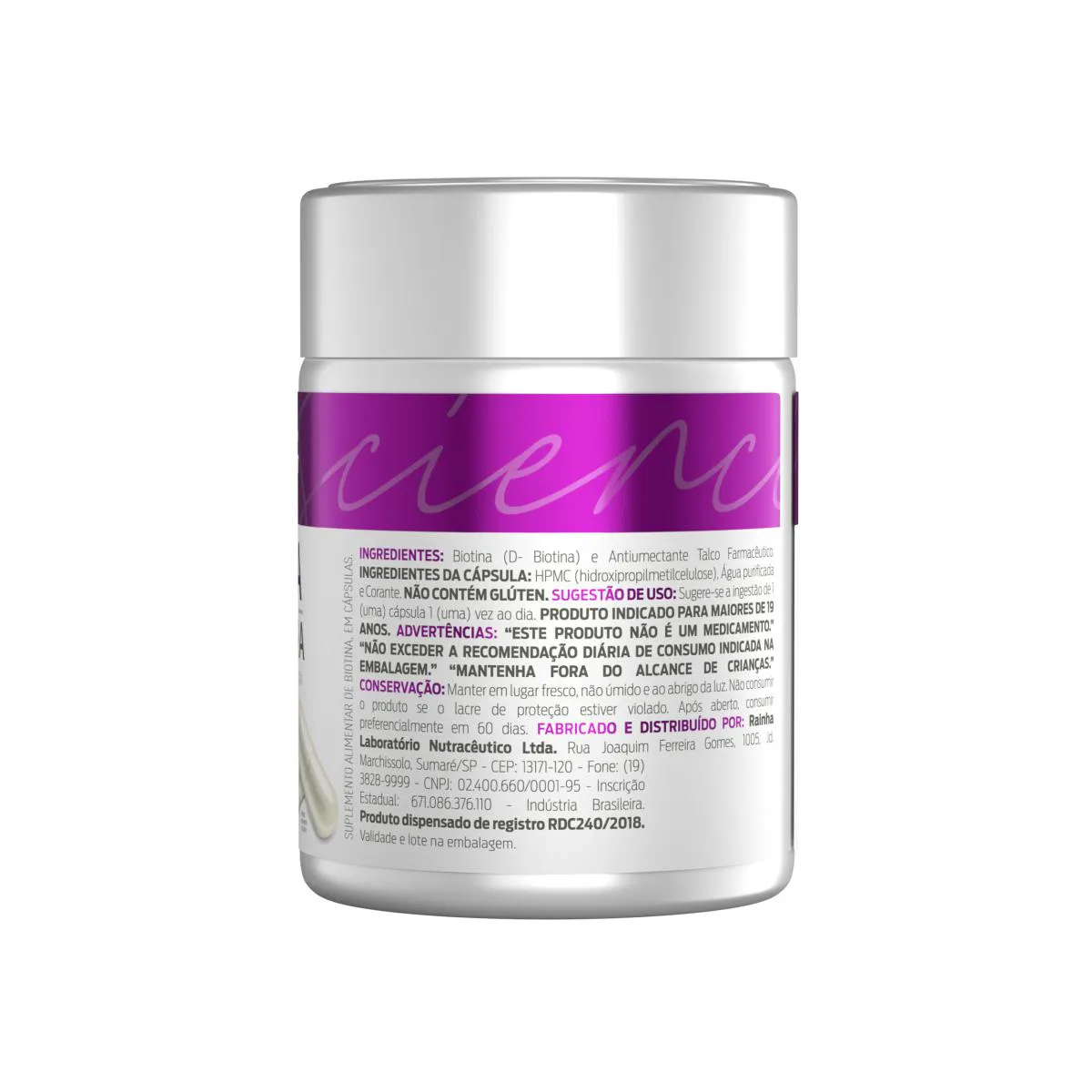 Biotina (d-biotina) e Antiumectante Talco Farmacêutico. INGREDIENTES DA CÁPSULA: HPMC (hidroxipropilmetilcelulose), Água purificada e corante. NÃO CONTÉM GLÚTEN