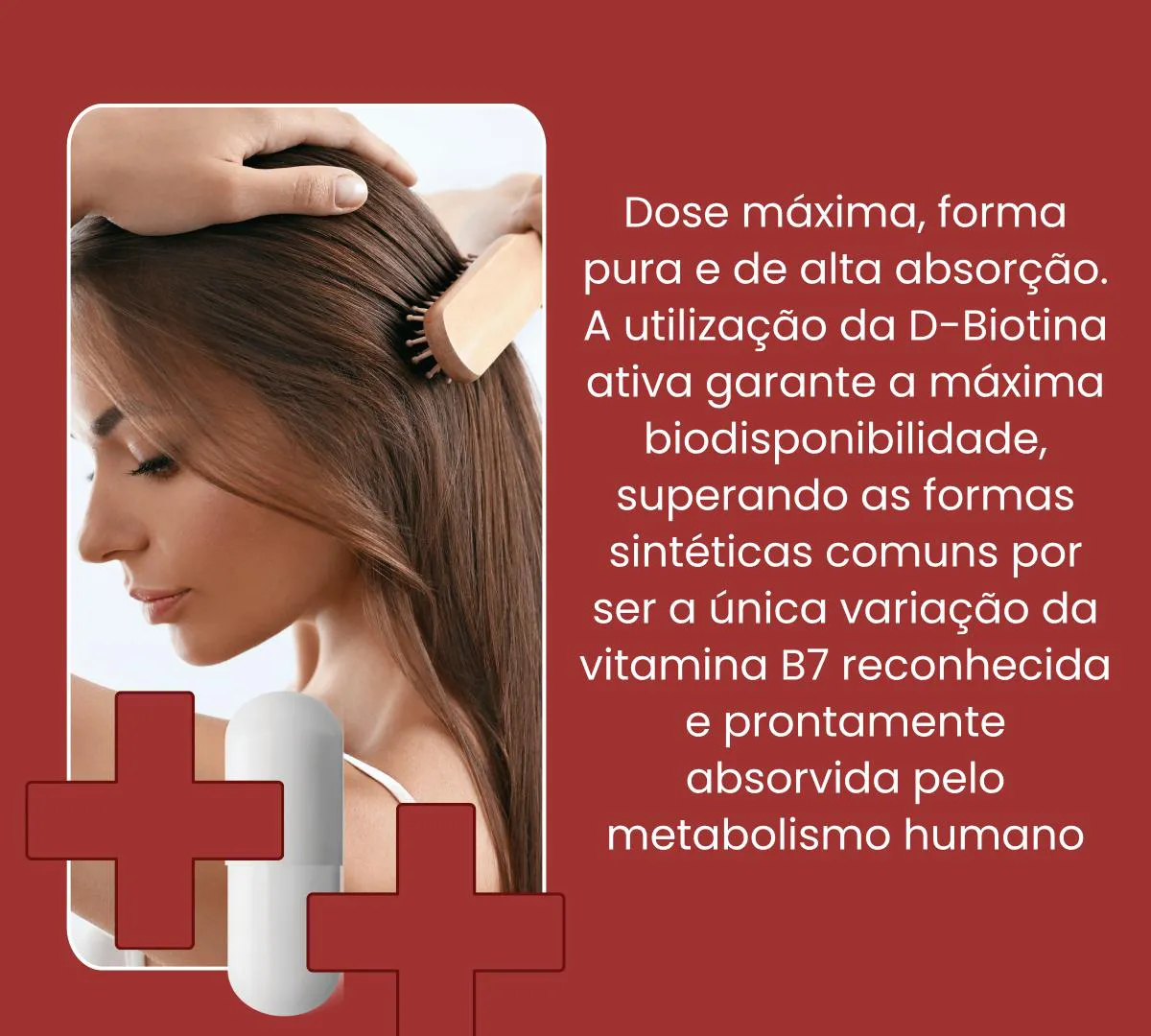 - FORTALECIMENTO DE CABELO E PELE: Nutriente fundamental para a produção de queratina, auxiliando diretamente na manutenção da saúde capilar e na integridade dos tecidos da pele.
