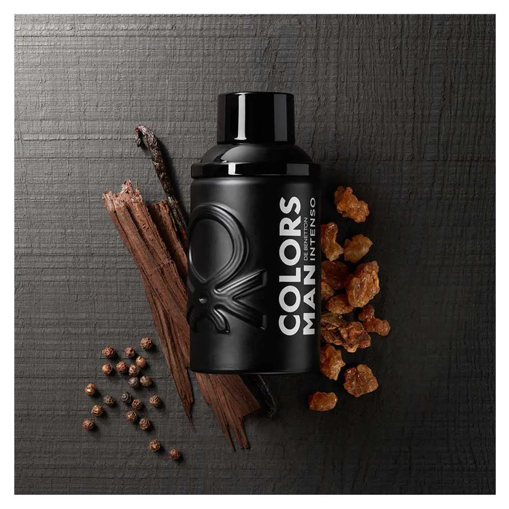 Black Intenso de Colors surpreende com uma variedade intensa e harmoniosa de essências que combinam frutas cítricas refrescantes com especiarias marcantes e uma base oriental amadeirada.