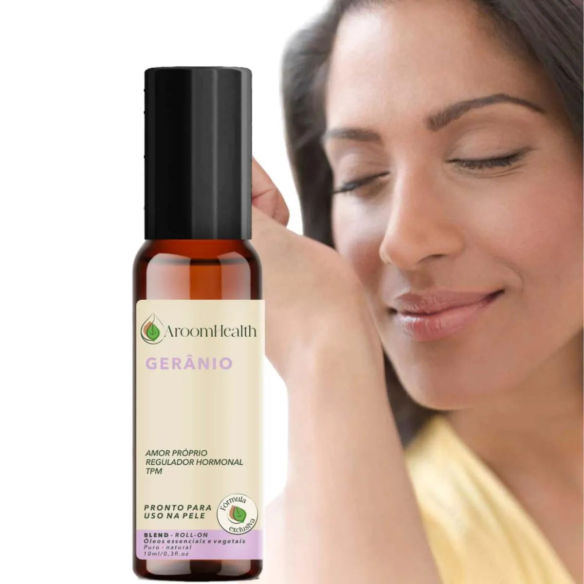 O Blend Óleo Essencial Gerânio Roll-on é um produto natural à base de óleo essencial puro de Gerânio e óleo vegetal de Semente de Uva, desenvolvido em formato roll-on para aplicação tópica, com fórmula exclusiva da marca AroomHealth.