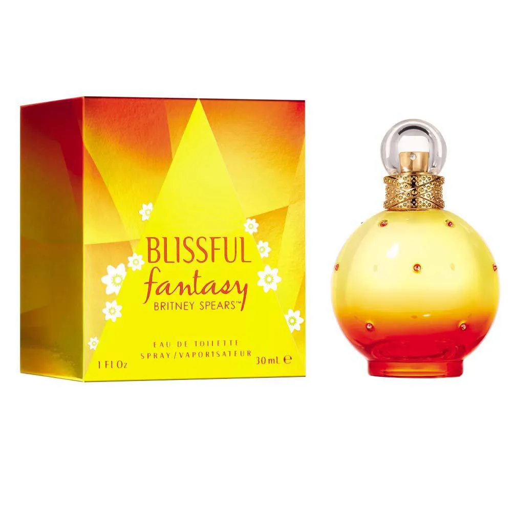 Explodindo no coração, acordes românticos de pétalas de jasmim, de tuberosa e de flor de tiare. Completando a magia de Blissful surgem notas de fundo de musk, sândalo e lírios cremosos. O frasco traz um clima quente, tons eufóricos de amarelo e laranja avermelhado para emocionar com o espírito feliz de Britney e seu humor eternamente solar. A caixa metálica oferece um apelo na prateleira. Viva livremente e além dos limites. Fantasia é o paraíso. Vá e encontre a sua!