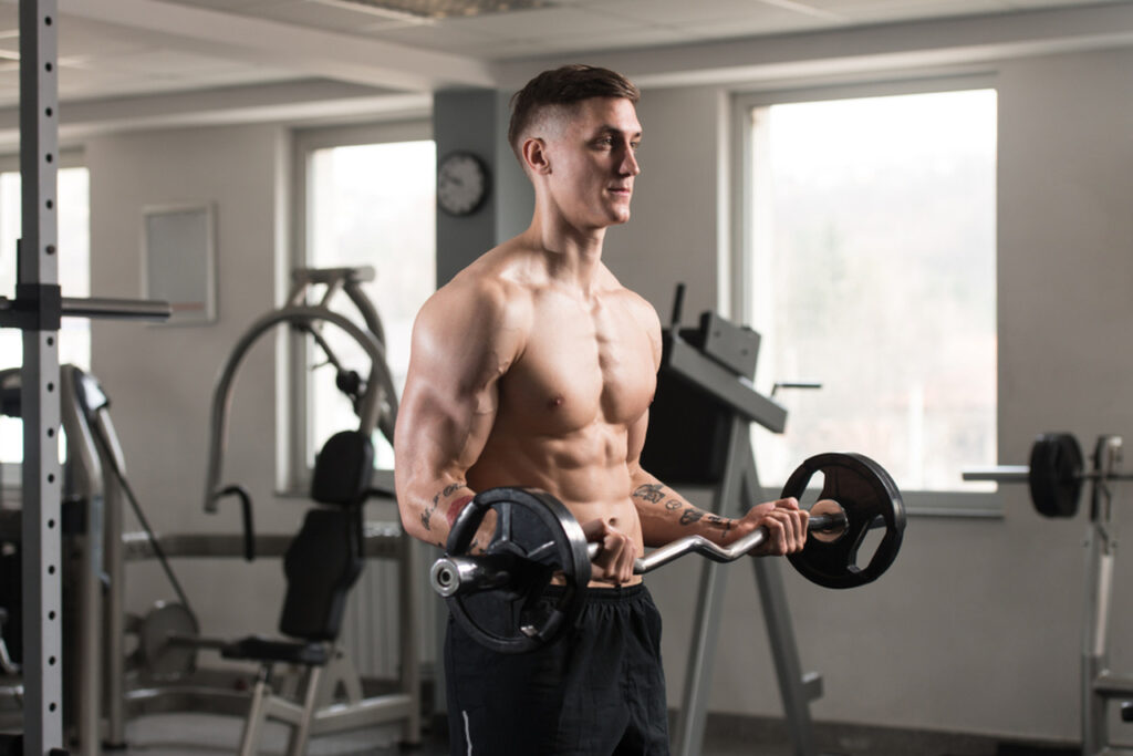 Em primeiro lugar, para realizar o exercício da rosca direta é muito importante ficar atento à postura para não sobrecarregar a coluna.