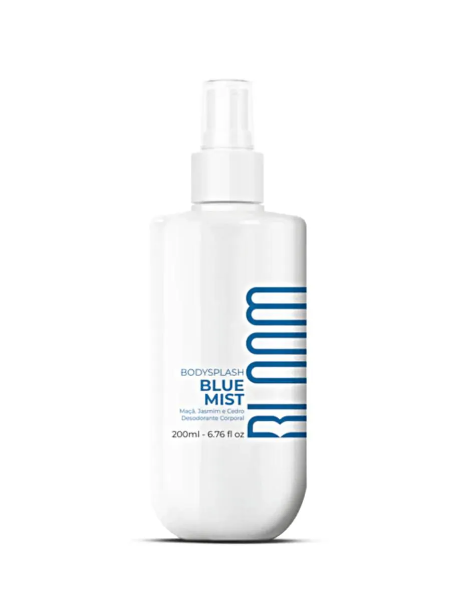Bloom Blue Mist Body Splash- Desodorante Corporal 200ml Refrescante como a brisa do mar e leve como um toque de névoa azulada, o Body Splash Blue Mist perfuma a pele com suavidade e elegância. Formulado com base ultraleve, que seca rapidamente e fixa a fragrância com suavidade, mantendo a pele perfumada sem ressecar. Pirâmide Olfativa: floral Frutado Cítrico Notas de topo: Limão Siciliano, Maçã Verde e Cedro Notas de coração: Rosa Branca, Bambu e Jasmim Notas de fundo: Âmbar, Almíscar e Cedro