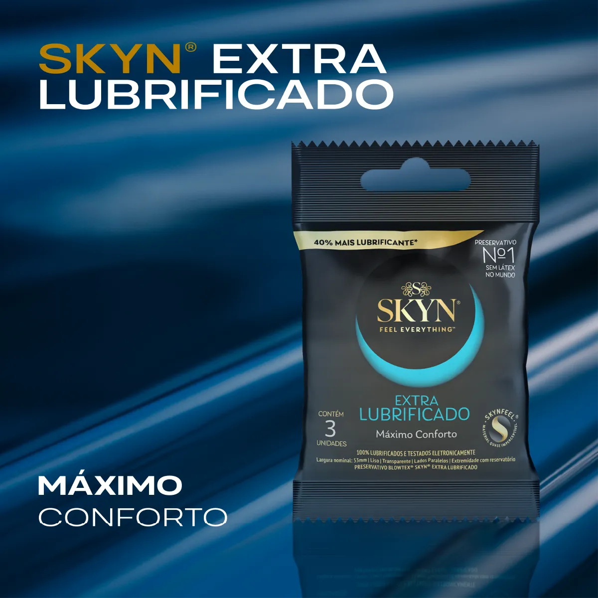 A camisinha Skyn Extra Lubrificado conta com 40% de lubrificação extra em comparação com Skyn Original e possui 53mm de largura nominal. Ela é ultramacia e oferece máximo conforto, feita para você sentir tudo, com alta sensibilidade e sem abrir mão da segurança. Rigorosamente testada dentro dos mais altos padrões de segurança, Skyn é feita com a Tecnologia Skynfeel, que utiliza Poliisopreno para garantir sensação natural durante a relação. Não contém látex, ou seja, não causa alergia.