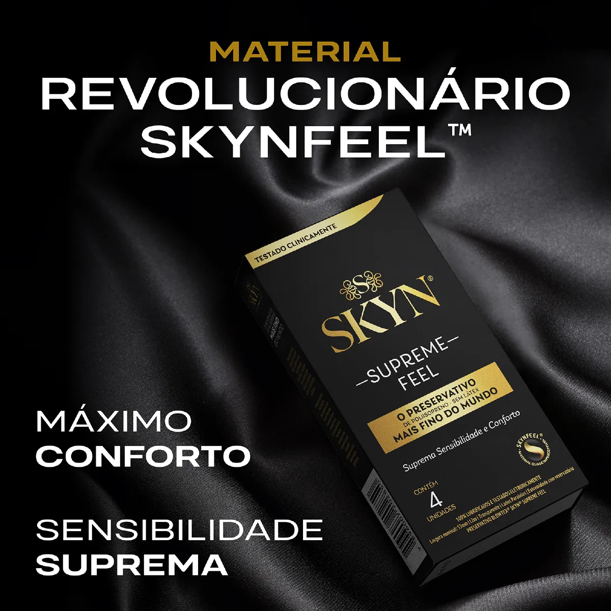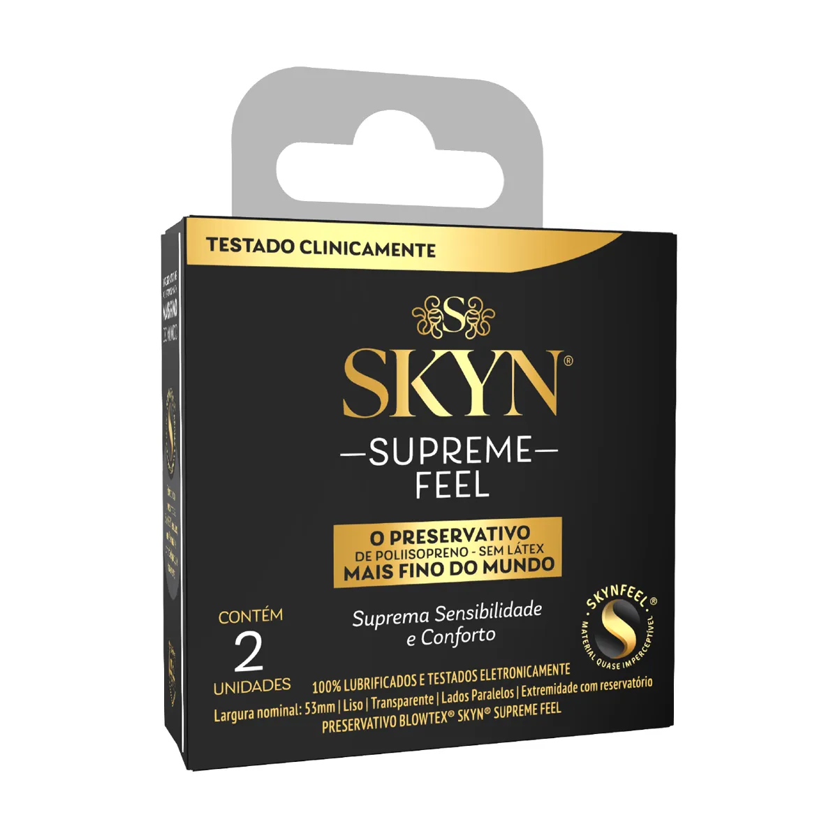 SKYN® Supreme Feel é o preservativo mais fino da linha SKYN®, desenvolvido com a exclusiva tecnologia SKYNFEEL™, um material sem látex ultramacio e avançado. Ele é indicado para recobrir o pênis ereto durante a relação sexual, auxiliando na prevenção de doenças sexualmente transmissíveis, no planejamento familiar e para pessoas com alergia ao látex de borracha natural.