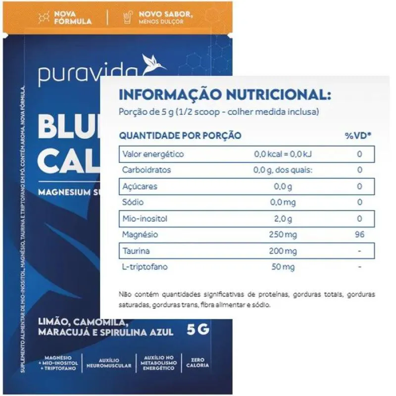 BLUE CALM 2.0 - ZERO AçúCAR - CAIXA COM 20 SACHES - PURAVIDA ORIGINAL
