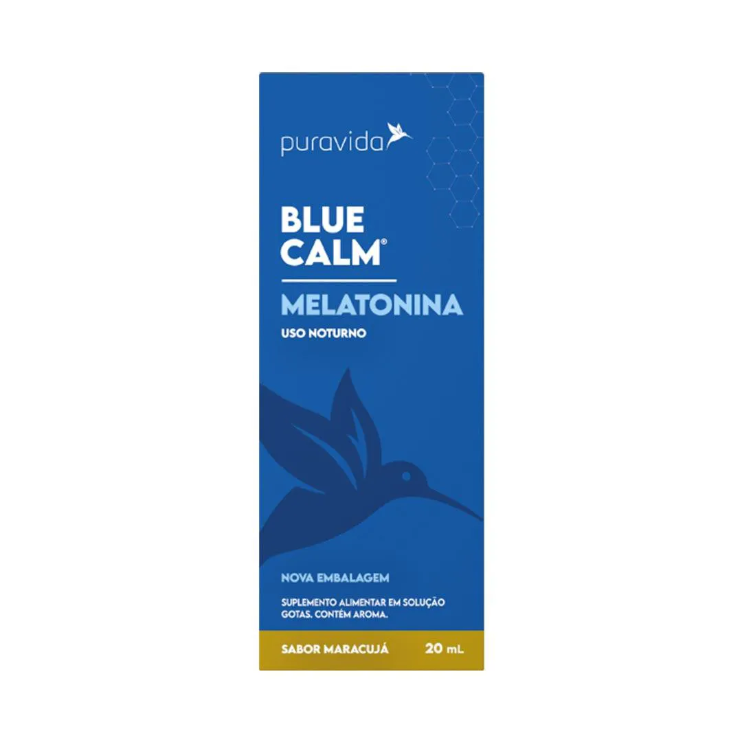 Blue Calm é um suplemento líquido desenvolvido pela Puravida, contendo melatonina pura em solução aquosa, com aroma natural de maracujá. Cada gota fornece 0,21 mg de melatonina, em uma base livre de açúcar, álcool, lactose, glúten e corantes artificiais.