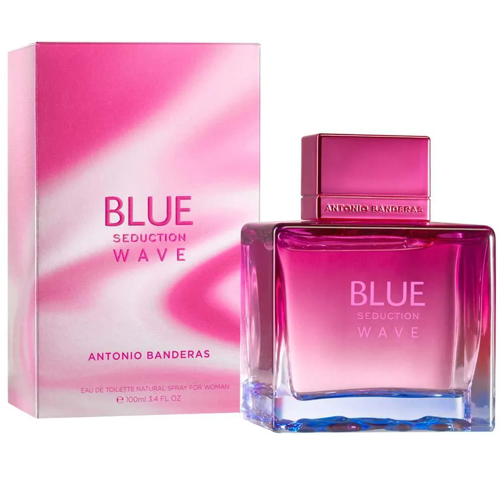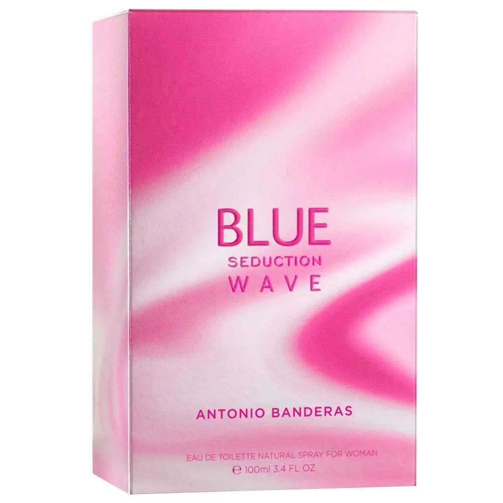 Blue Seduction Wave Eau De Toilette 100ml, perfume importado feminino de Banderas, possui uma fragrância fresca, feminina e sensual. É o reflexo de uma mulher sexy, elegante, sedutora e muito feminina. Uma mulher com personalidade, moderna e espontânea, forte na arte da sedução e que vive intensamente cada momento.