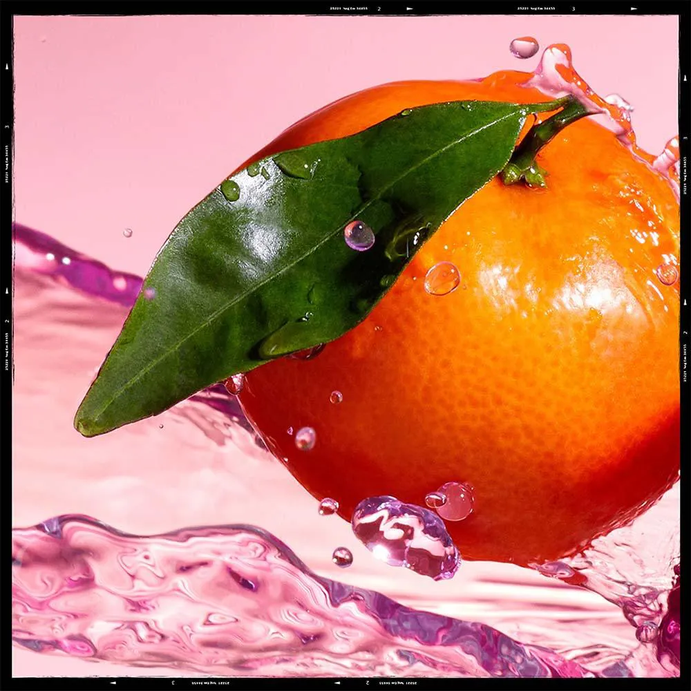 O frasco rosa de vidro denota a feminilidade e o frescor do oceano.
