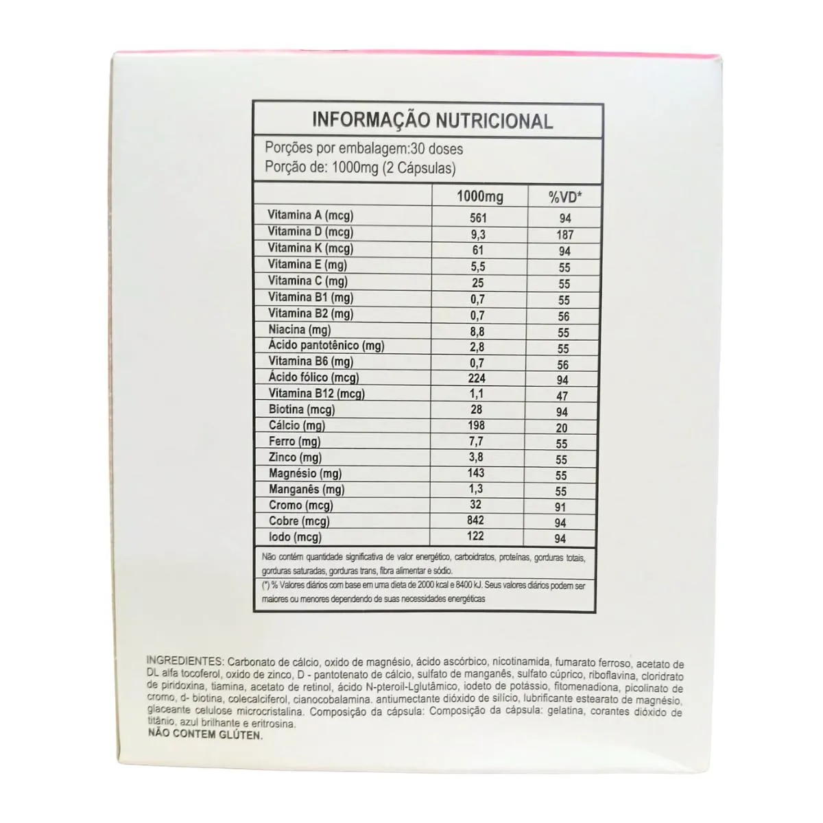 Formulado com blend equilibrado de vitaminas e minerais femininos; formato em cápsulas de fácil ingestão. Características