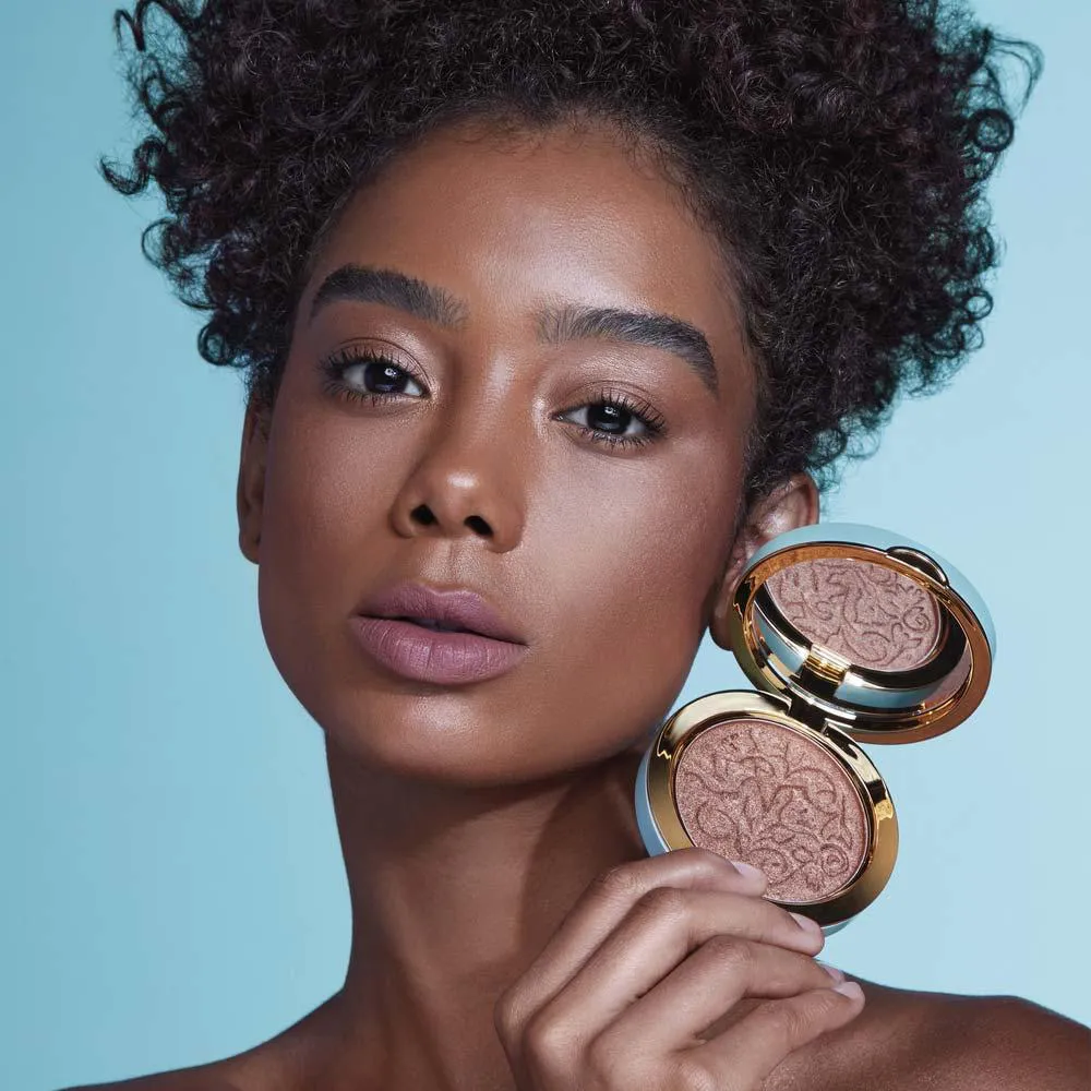 Iluminador - Com auxílio de um pincel, aplique nas regiões mais salientes do rosto, como alto das maçãs, têmporas, ponta do nariz e centro da testa até obter a intensidade desejada.