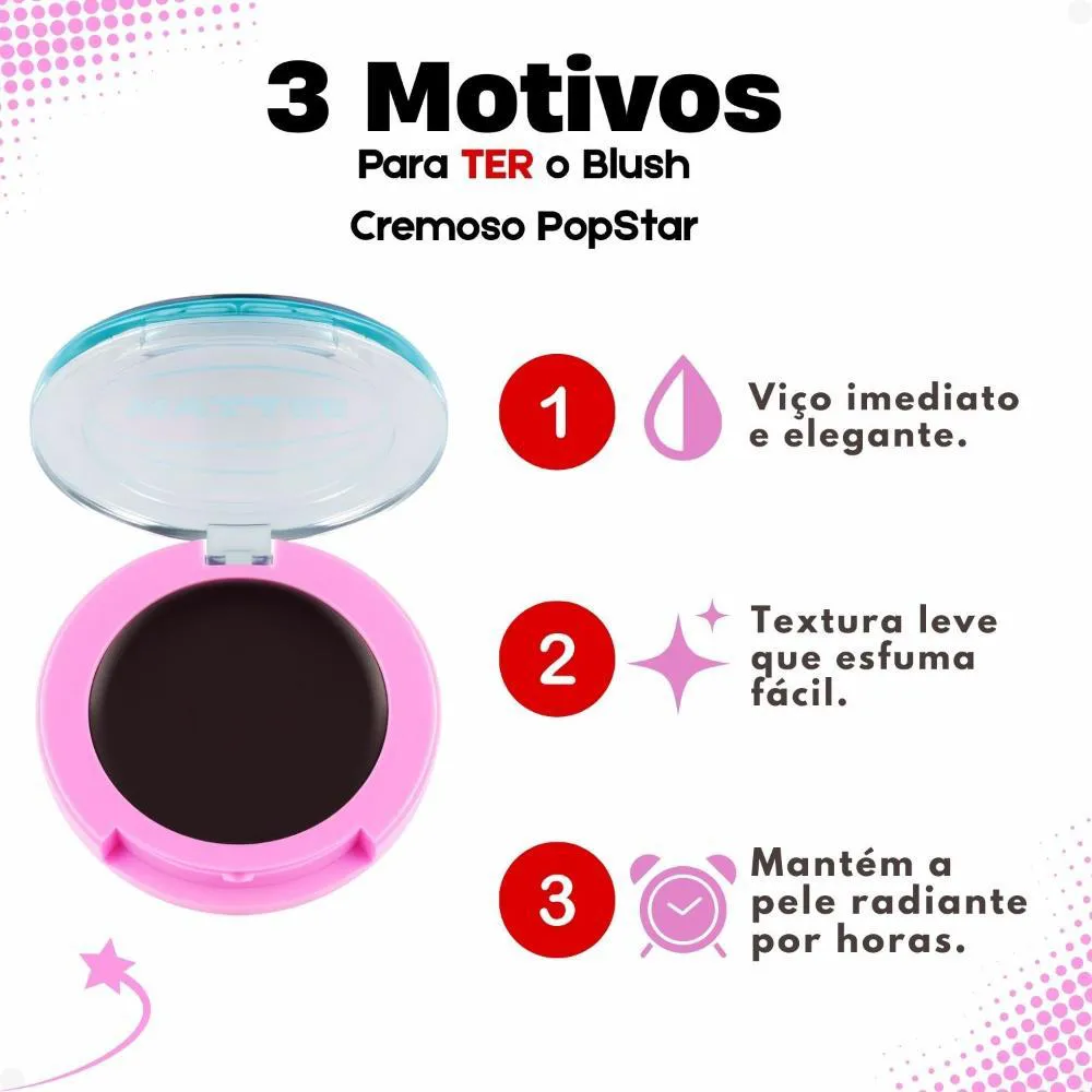 Produto da exclusiva linha Popstar Crazy Flush da Ruby Rose.Acabamento tipo Glow para um visual radiante.Cor Paparazzi, ideal para diversos tons de pele.Embalagem prática em pote plástico com tampa rosqueável.Ocasiões de Uso/Cenários Ideais