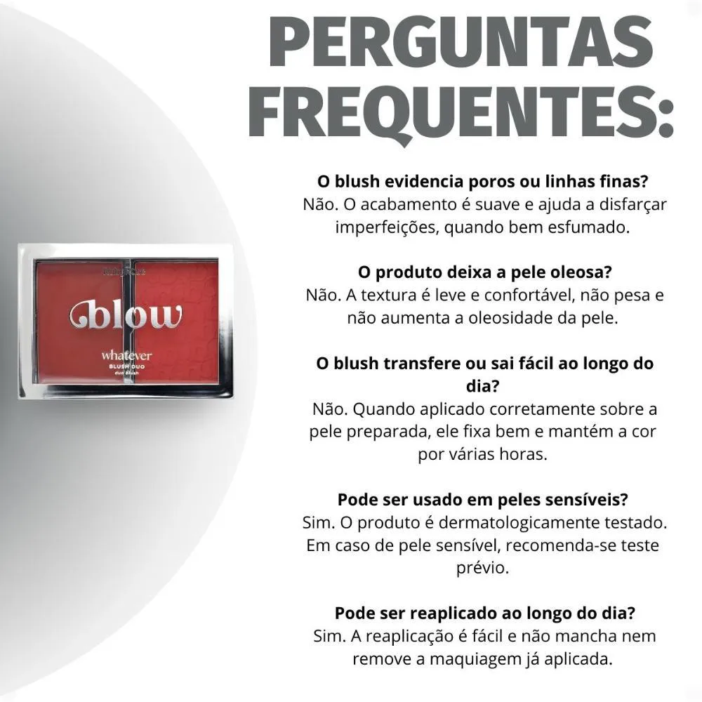 Este blush é perfeito para a maquiagem diária, adicionando um toque de cor e vida ao seu rosto para o trabalho, estudos ou compromissos casuais. Ideal para eventos sociais, festas e encontros, onde você deseja um visual mais elaborado e sofisticado. Além disso, é perfeito para retoques rápidos ao longo do dia, mantendo sua maquiagem impecável em qualquer situação. Seja para um look natural ou uma produção mais elaborada, o Blush Duo Ruby Rose Blow é o seu aliado perfeito.Modo de Uso/Aplicação