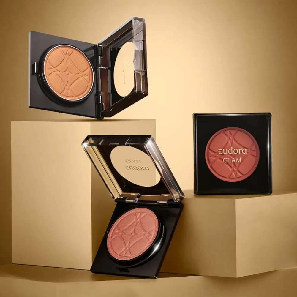Eudora Glam Blush em Pó garante um toque de radiância para um ar glam natural.
