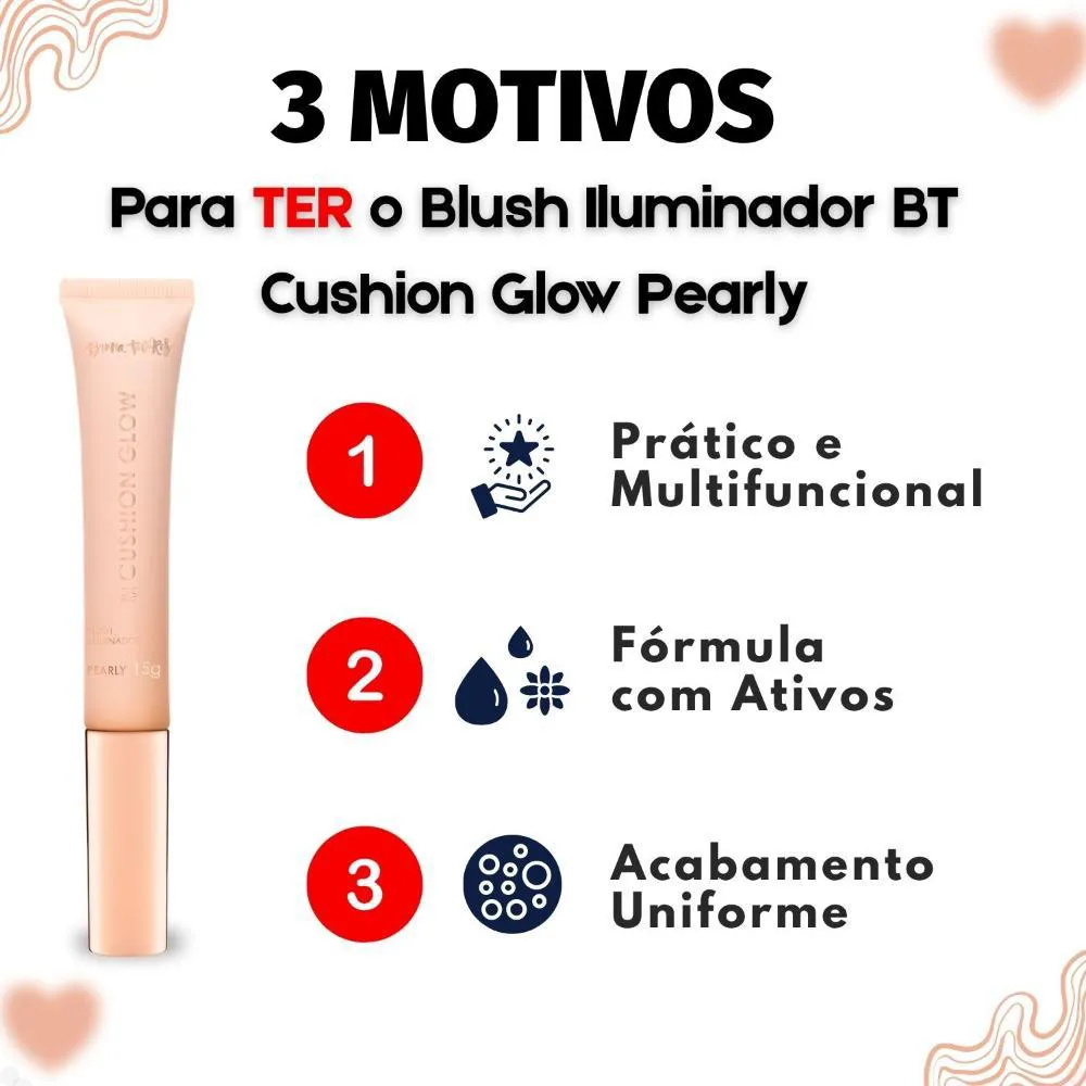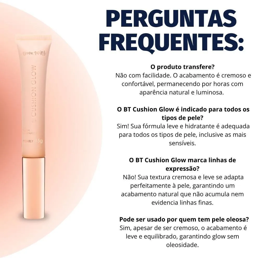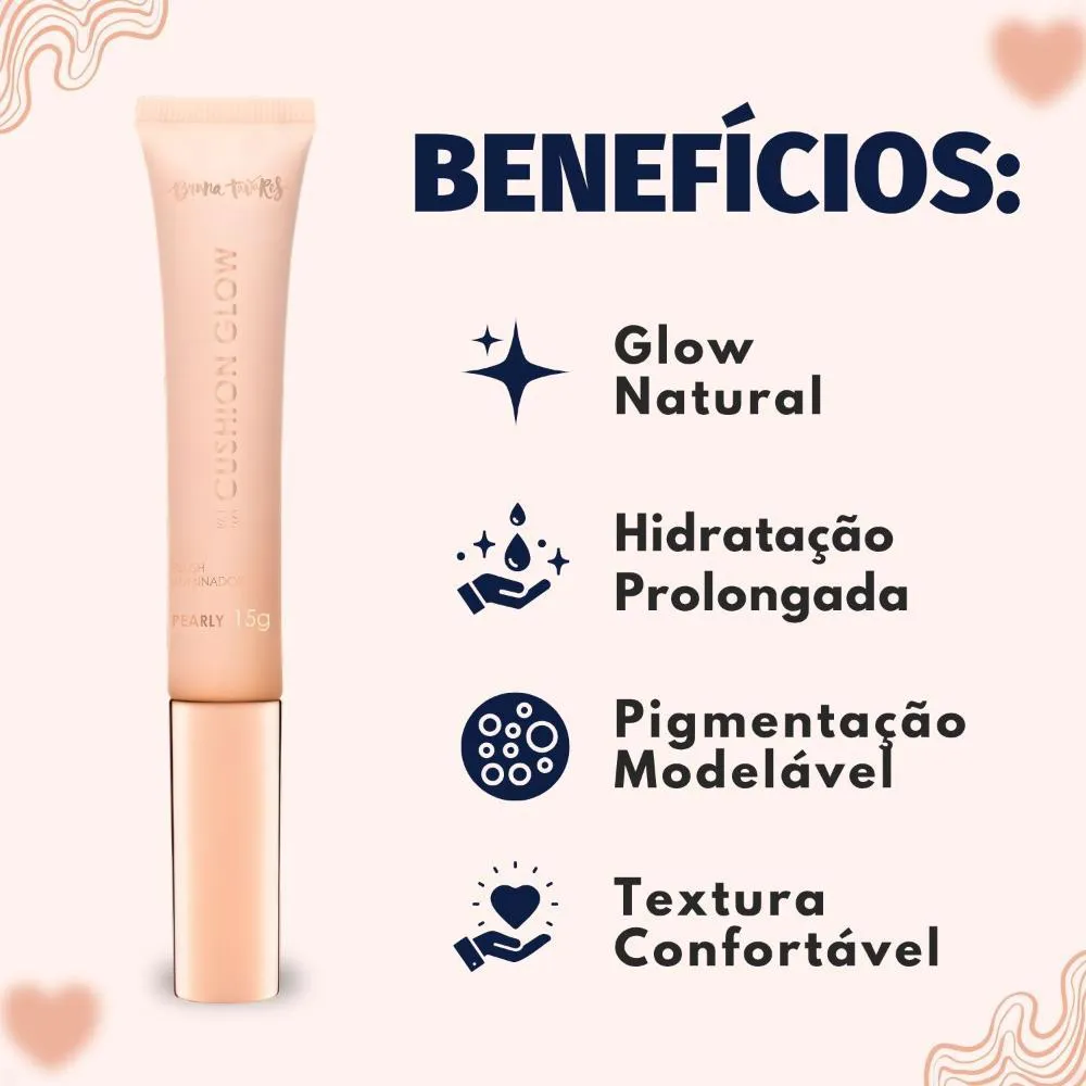 Descubra o segredo para uma pele com viço e um brilho natural com o Blush Iluminador Bruna Tavares Bt Cushion Glow Pearly Bcg01b 15g . Este inovador blush líquido luminoso da BRUNA TAVARES entrega um iluminado sutil e um toque de cor delicado, realçando a sua beleza com um acabamento radiante e saudável. Sua fórmula exclusiva combina pigmentos translúcidos com ativos de skincare, proporcionando não apenas um rubor encantador, mas também hidratação e cuidado para a sua pele. Ideal para quem busca um produto multifuncional que oferece um visual fresco e luminoso, o Bt Cushion Glow Pearly adapta-se perfeitamente a diversos tons de pele, garantindo uma cobertura ajustável e um conforto incomparável. Transforme sua maquiagem com este item essencial que une cor, brilho e tratamento em um só produto.Benefícios Principais - Proporciona um iluminado natural com um toque sutil de cor, realçando a beleza da pele. - Entrega viço e hidratação, graças à sua fórmula enriquecida com ativos de skincare. - Garante uma cor saudável e radiante, com um acabamento luminoso. - Possui textura cremosa e cobertura ajustável, adaptando-se uniformemente à pele. - Produto multifuncional, ideal para uso no rosto, lábios e pálpebras.