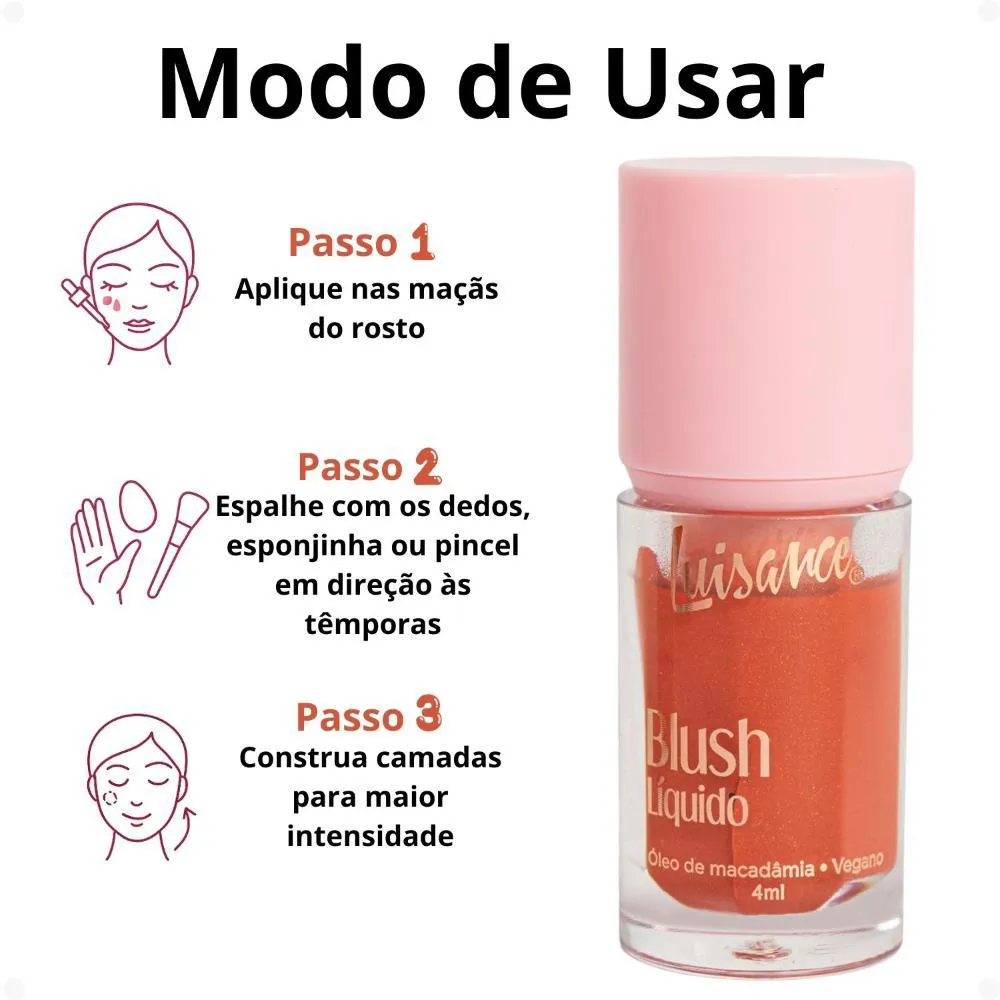 LUISANCE, este blush líquido na tonalidade Hibisco oferece a versatilidade e a praticidade que você busca para um visual radiante e saudável em qualquer ocasião.