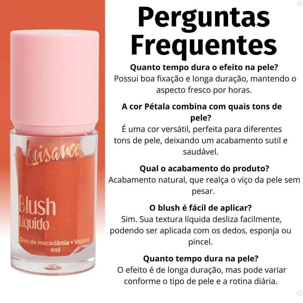 Blush Líquido Luisance Hibisco facilita a aplicação e a construção da intensidade da cor, permitindo um acabamento natural e adaptável. A tonalidade Hibisco oferece um toque de cor vibrante que complementa diversos tons de pele.