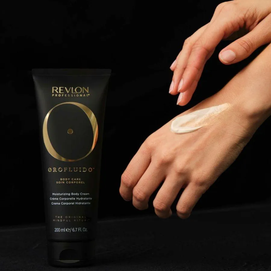 Creme Corporal Hidratante - Orofluido Revlon Moisturizing Body Cream da Orofluido é uma loção corporal infundida com óleo de argan. Este creme deixa a pele macia, radiante e delicadamente perfumada. A sua textura cremosa envolve-se com a pele garantindo hidratação e nutrição. Conteúdo: 200ml