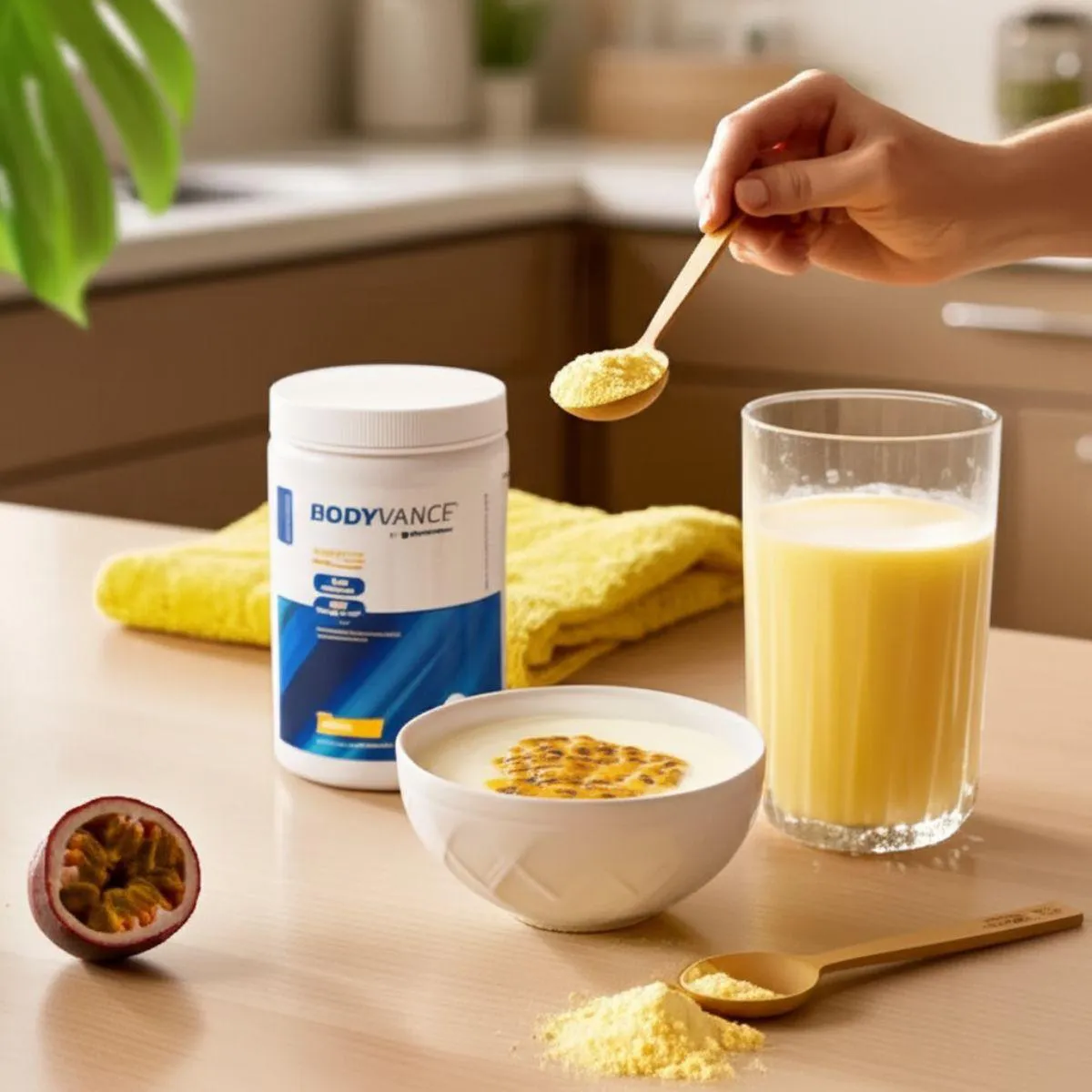 No dia a dia, misturar a porção em água ou leite e consumir como lanche ou pós-treino; sabor suave combina com frutas ou cereais.