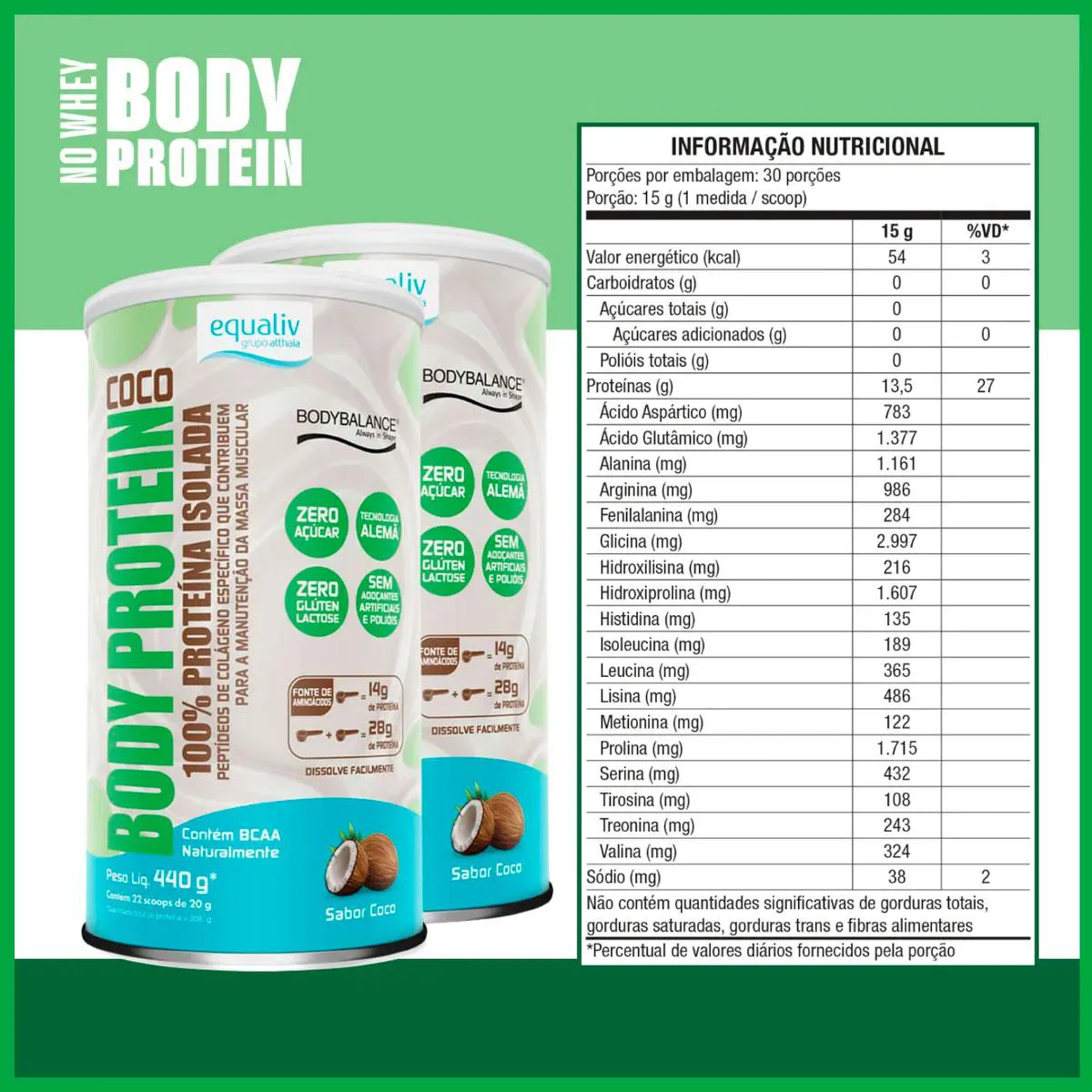 O que é e para que serve o Body Protein Coco 100% Proteina Isolada Bodybalance (440G) - Equaliv?