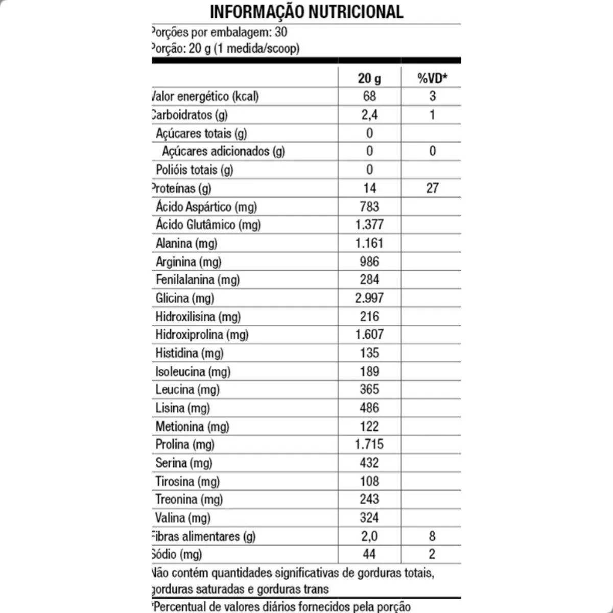 Cada porção de 20 g oferece cerca de 18 g de proteína, com baixo teor de carboidratos e gorduras. Este suplemento não contém glúten, lactose ou aditivos artificiais e utiliza edulcorante natural para proporcionar sabor suave.
