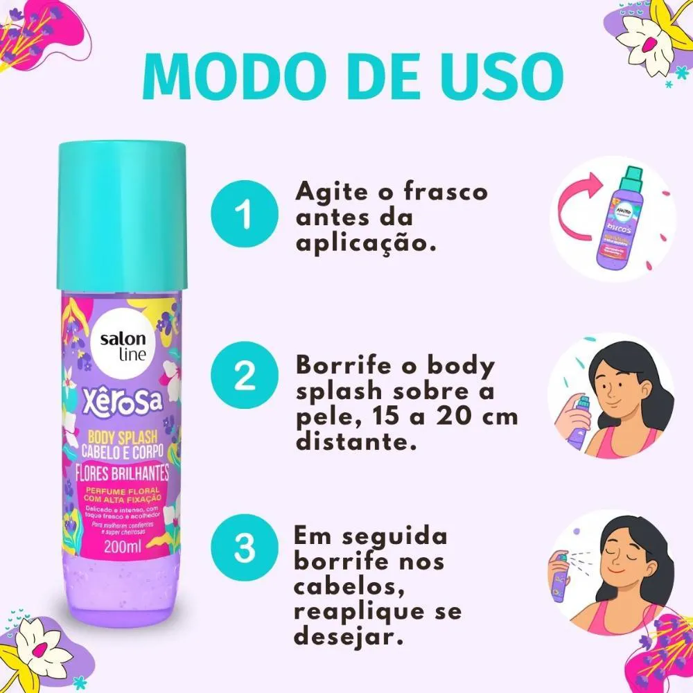 Como usar o Body Splash Cabelo E Corpo Salon Line Xêrosa Flores Brilhantes 200Ml?