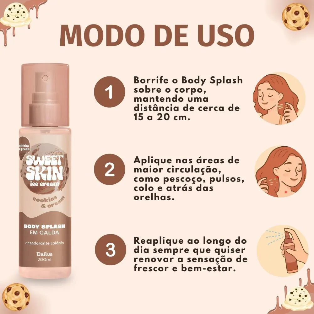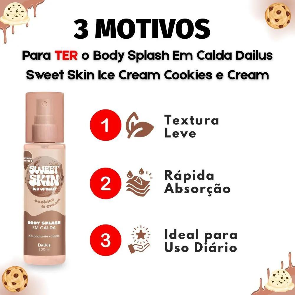 Body Splash Em Calda Dailus Sweet Skin Ice Cream Cookies e Cream 200ml