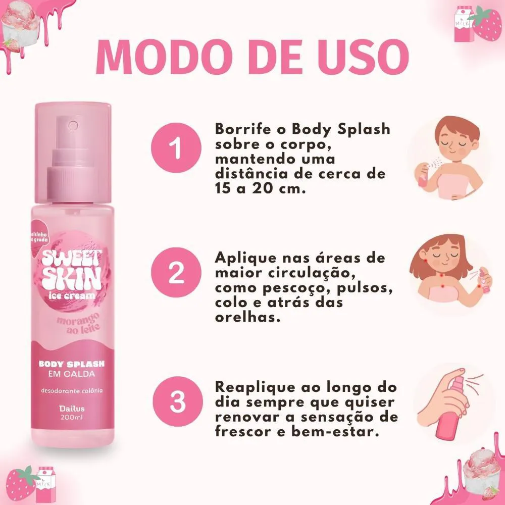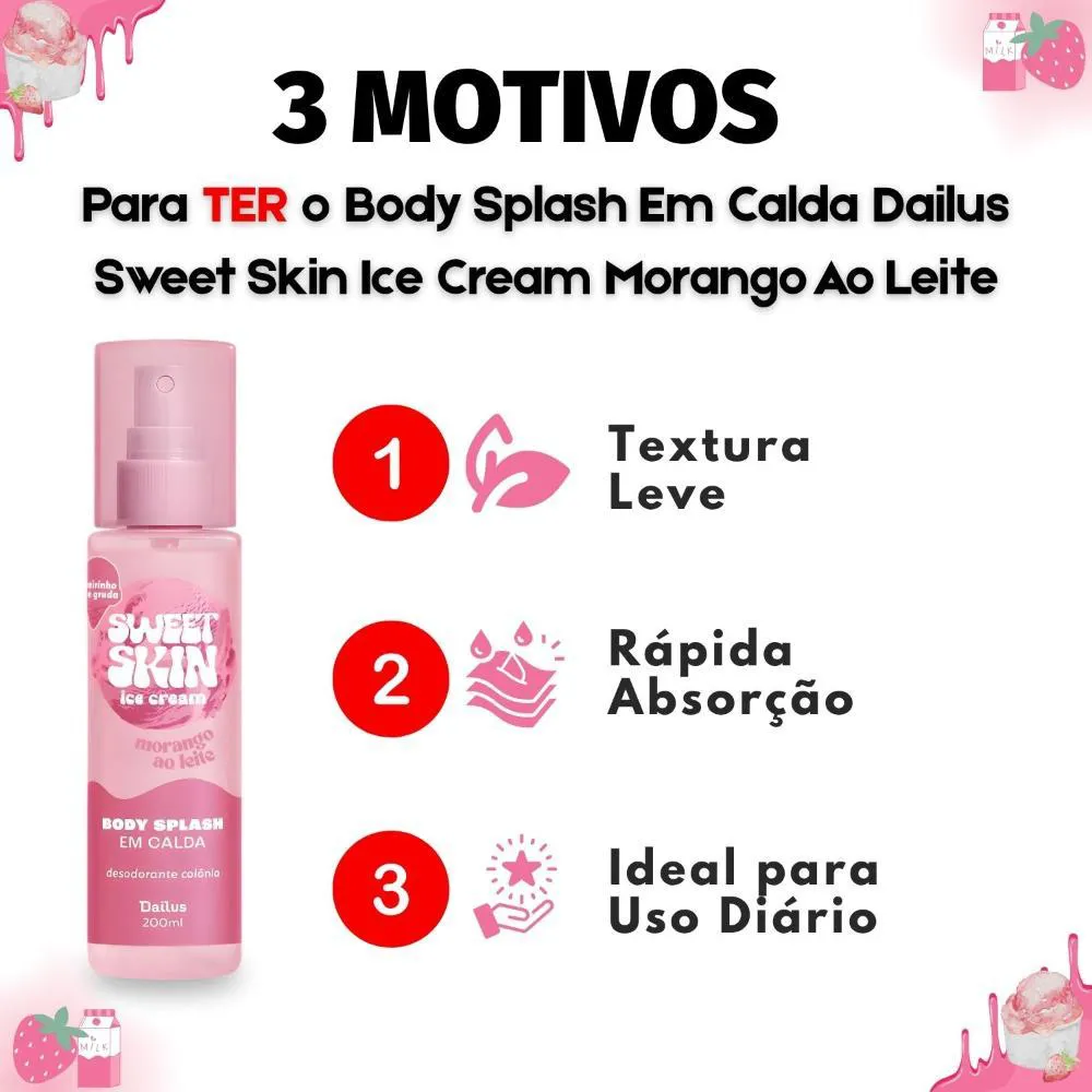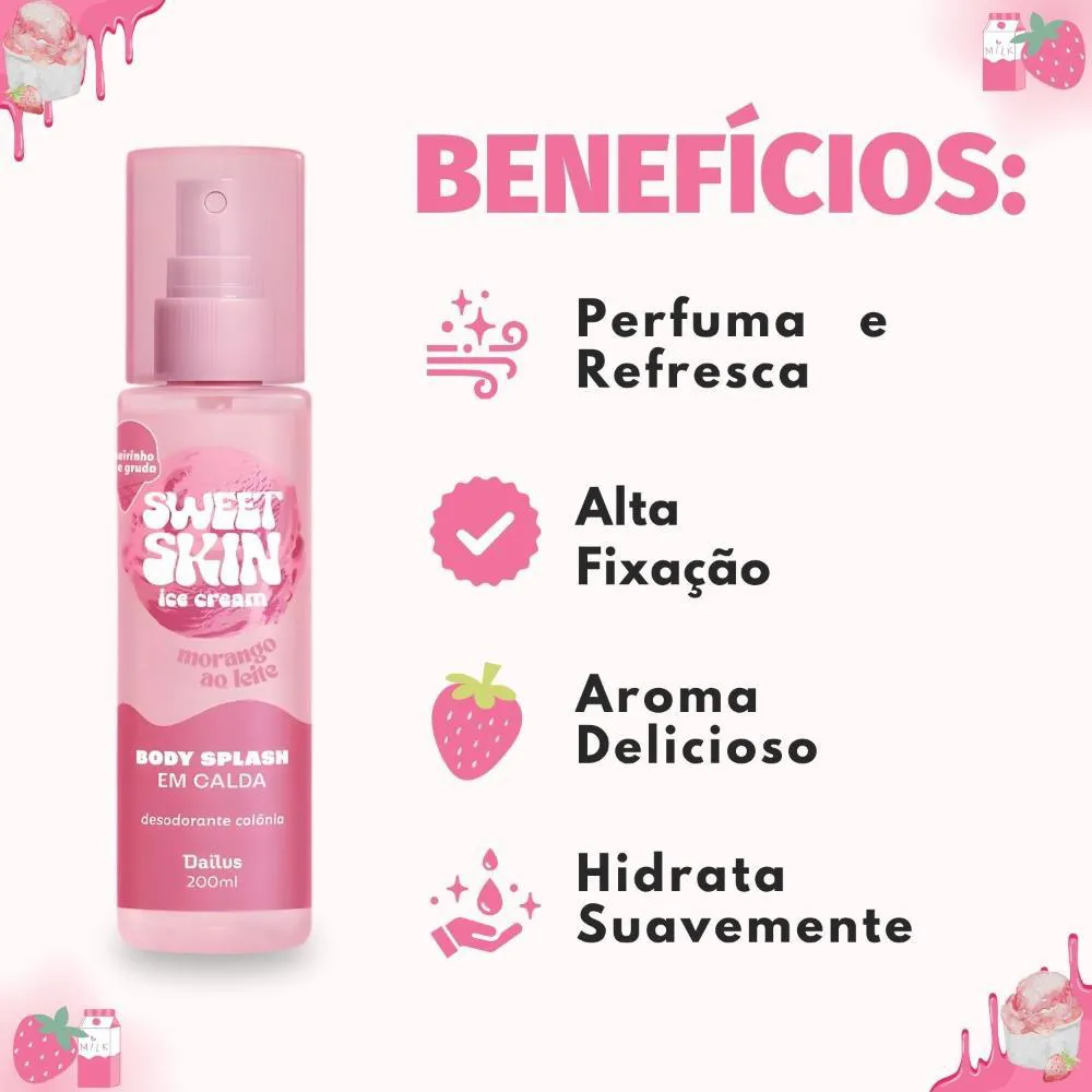 Body Splash em Calda Dailus Sweet Skin Ice Cream Morango ao Leite 200ml