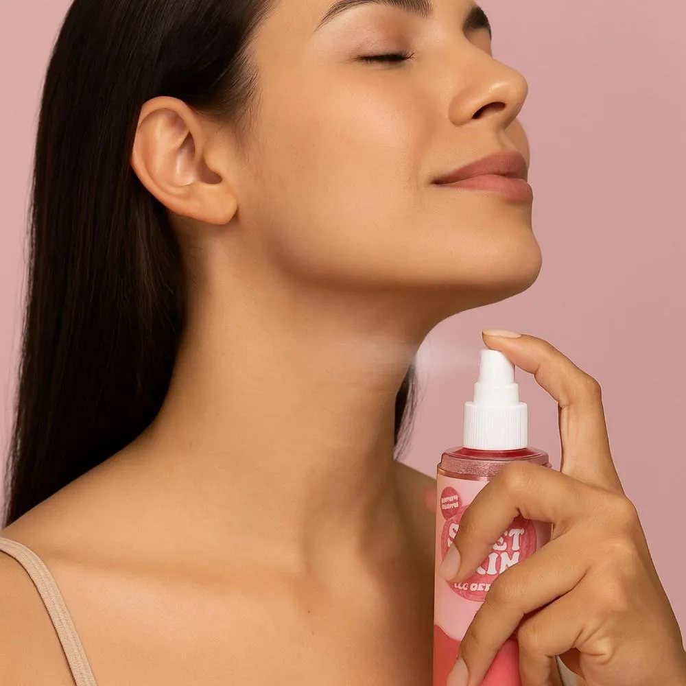 - Borrife o Body Splash Dailus Sweet Skin Morango ao Leite sobre o corpo, especialmente nas áreas desejadas.
