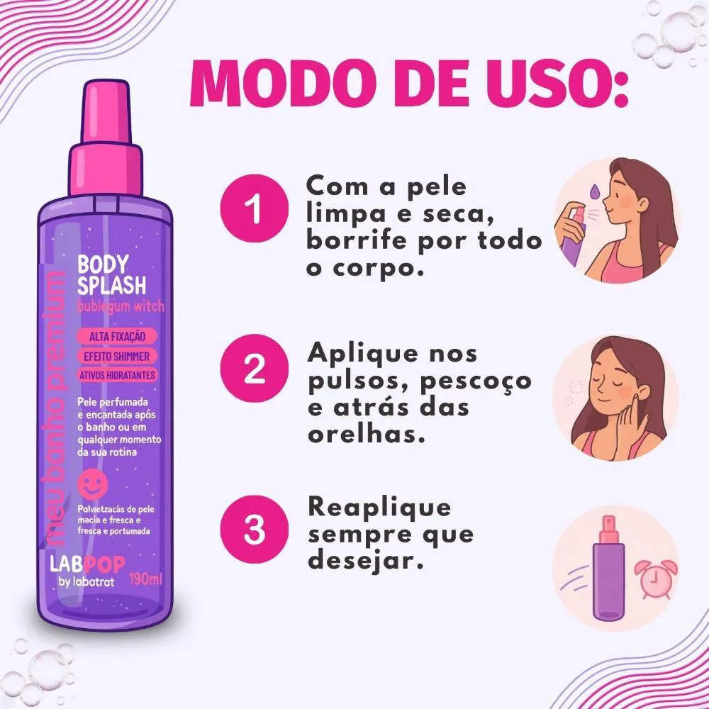 Como usar o Body Splash Labpop By Labotrat Meu Banho Premium Bubblegum Witch 190Ml?