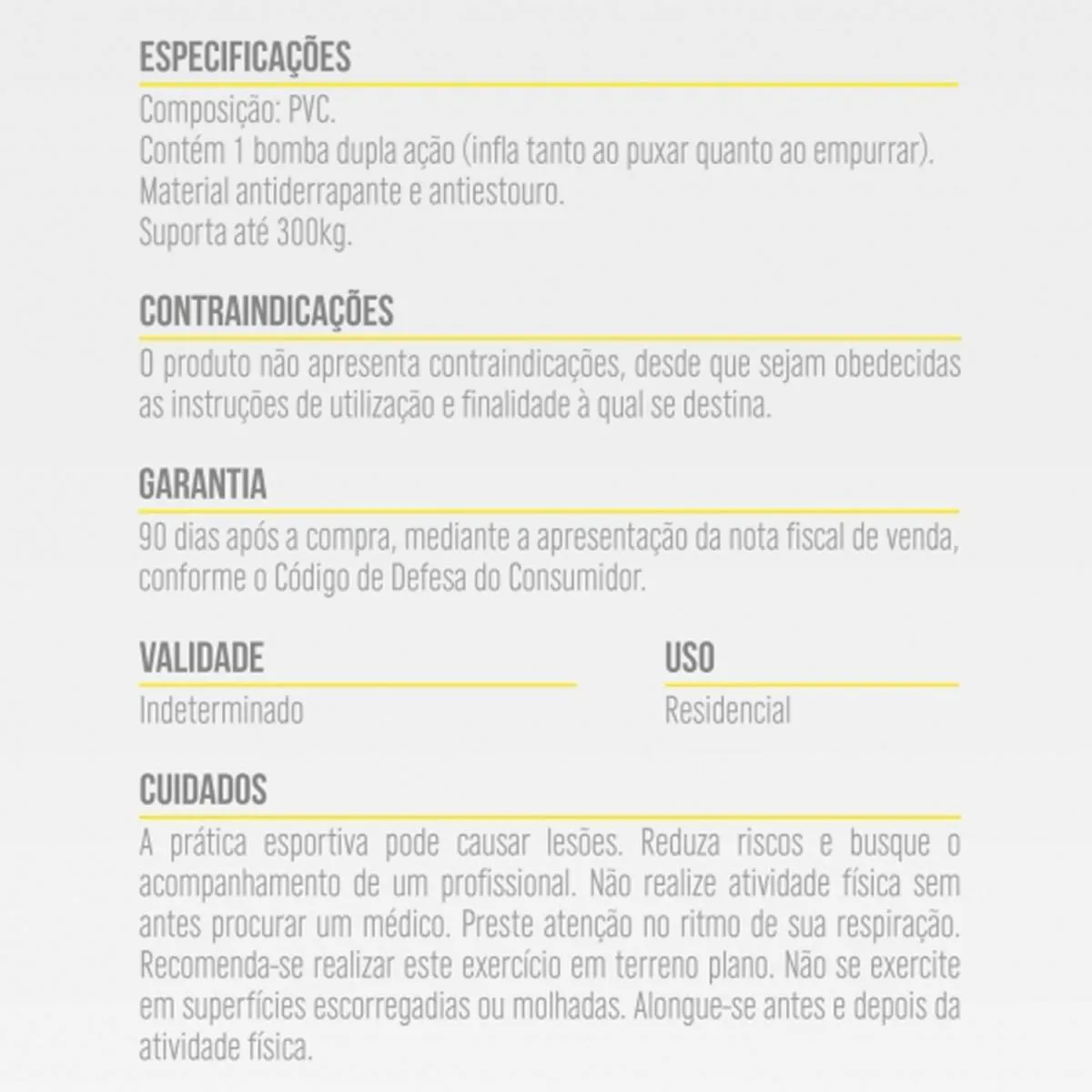 Indicada para yoga, pilates, fisioterapia e exercícios em geral, promove o fortalecimento dos glúteos, pernas e abdômen, possibilitando a prática de exercícios com diferentes graus de intensidade.