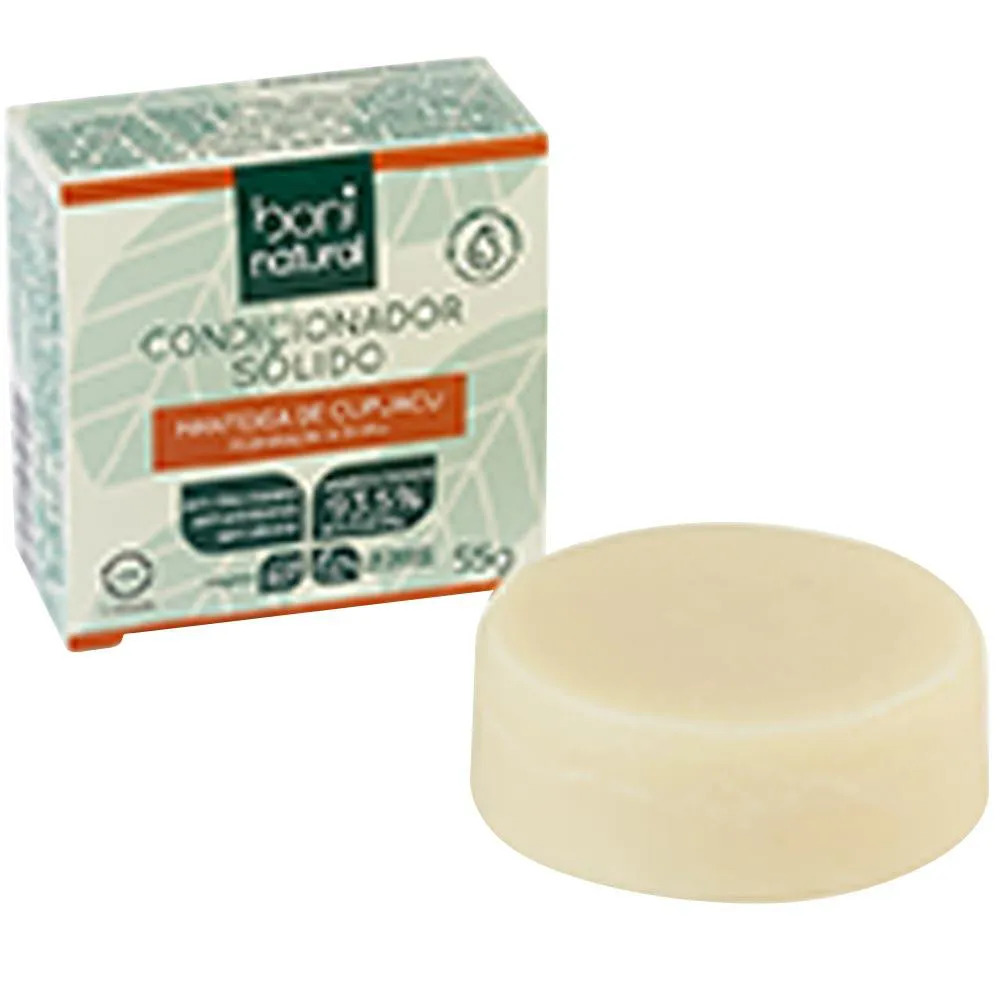 O condicionador Sólido Boni Natural , é uma resposta a nova consciência que nós estamos buscando. O produto possui massa base 100% vegetal e não contém ingredientes nocivos à saúde humana e nem ao meio ambiente. Não utiliza água na sua composição nem no processo de fabricação. A fórmula contém manteiga de cupuaçu, óleo essencial de rícino e óleo de palma, nutrem e hidratam, deixando os fios mais macios e sedosos.
