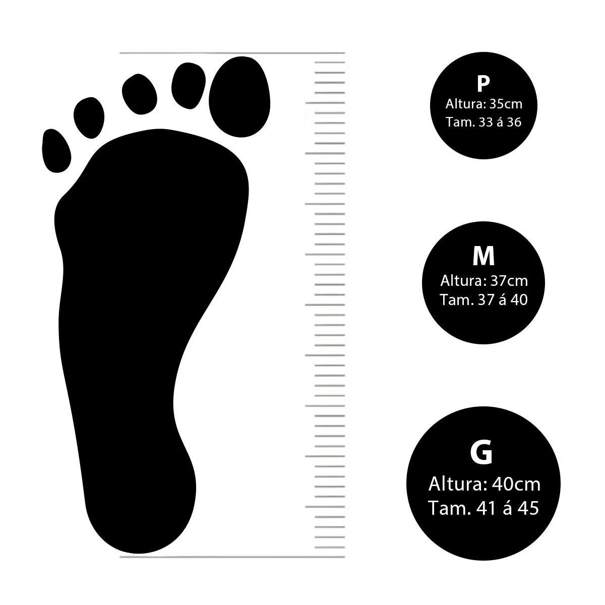 Tamanho: P - Calçado de 33 a 36, Altura de 35