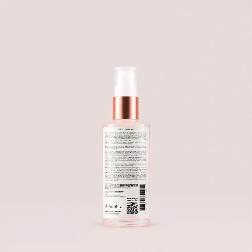 Ingredientes Principais: Óleo multifuncional, blend de óleos nutritivos, proteínas reparadoras, filtro UV leve.